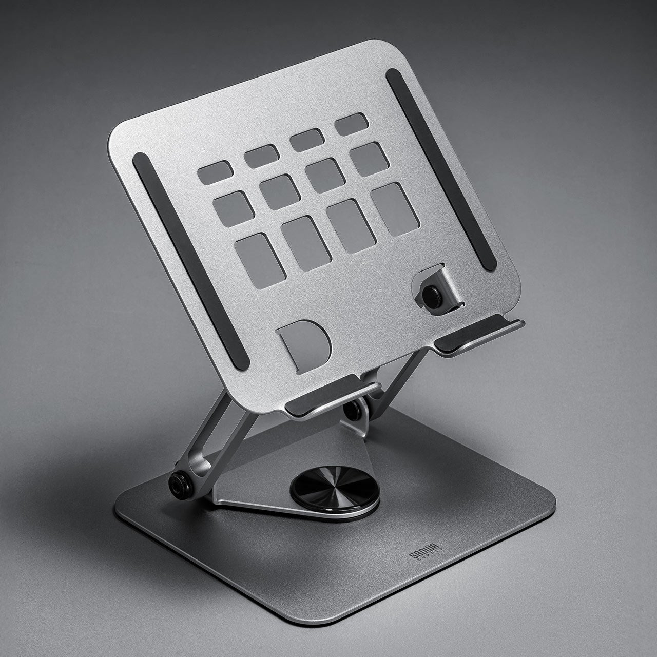 本製品は、 角度も高さも自由に調整できる2つのヒンジを搭載したアルミ製タブレットスタンドです。無段階で調整が可能なので、作業や視聴スタイルに合わせて最適なポジションを設定できます。
