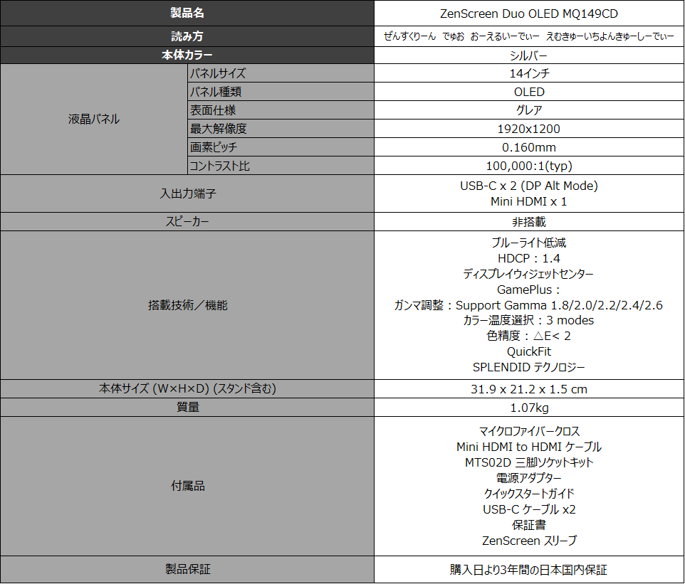 製品詳細:https://www.asus.com/jp/displays-desktops/monitors/zenscreen/zenscreen-duo-oled-mq149cd/