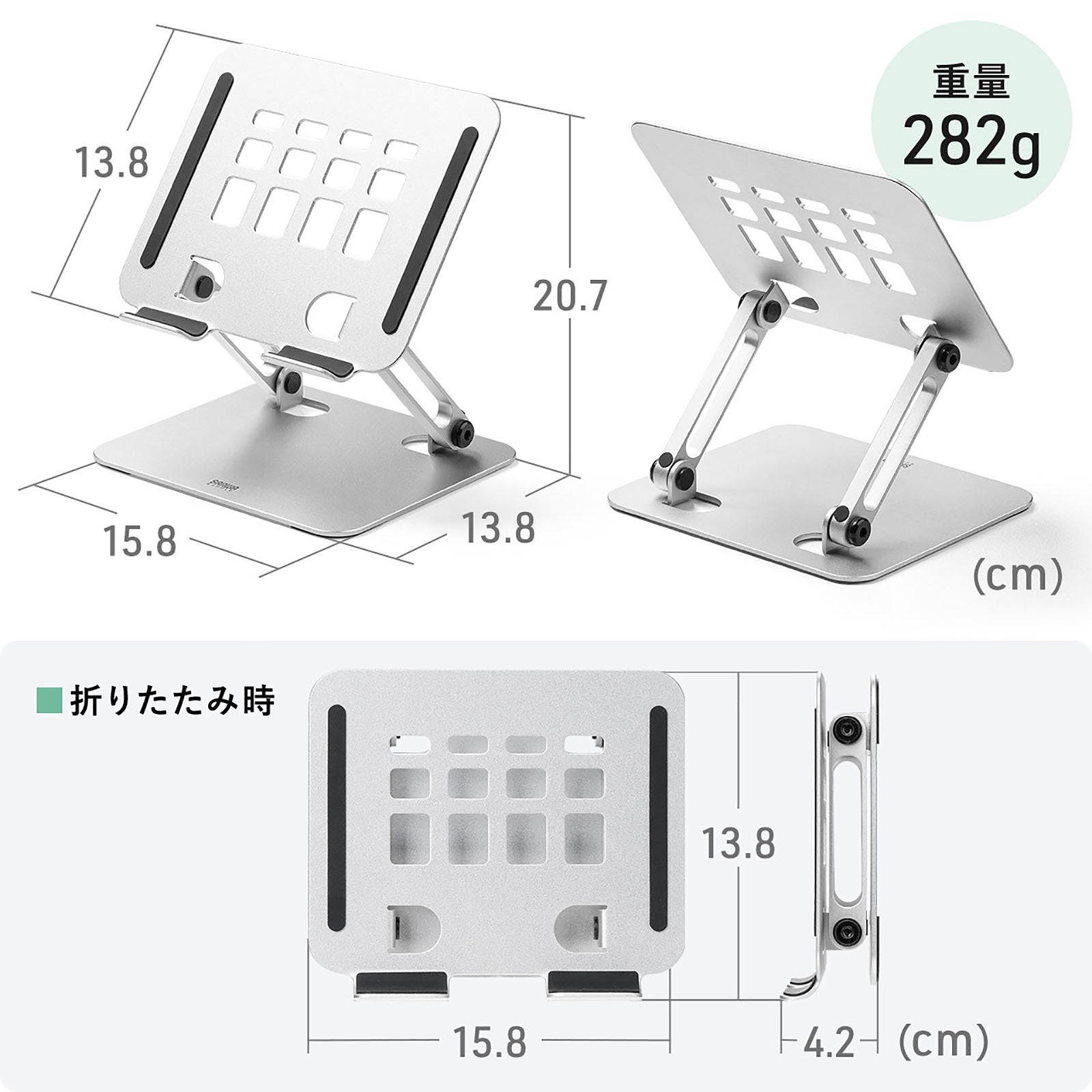 タブレットスタンド 折りたたみ アルミ製 無段階 角度調整 2関節 スマートフォンスタンド Switch シルバー