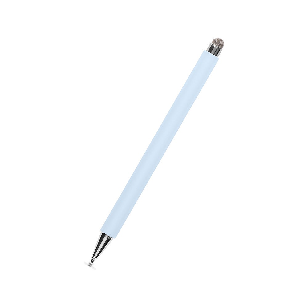 超感度ファイバーとスリムディスクの2WAYペン先仕様で、スリムディスクのペン先は本体をひねって繰り出せるスクリュータイプのタッチペンになっています。ふわふわ柔らかい超感度ファイバーのペン先は、画面保護ガラスを貼った機器でも引っかかりなく軽い力でタッチやスライド操作が快適にできます。また、タッチ時に音がしないため静かな場所でもお使いいただけます。もう一方のペン先は従来の透明ディスクよりも一回り小さい約6mm幅でさらに狙いやすいスリムディスクで、より狙った場所へタッチしやすいペン先です。こちらもペン先の替え芯が各1個ずつ同梱されています。
