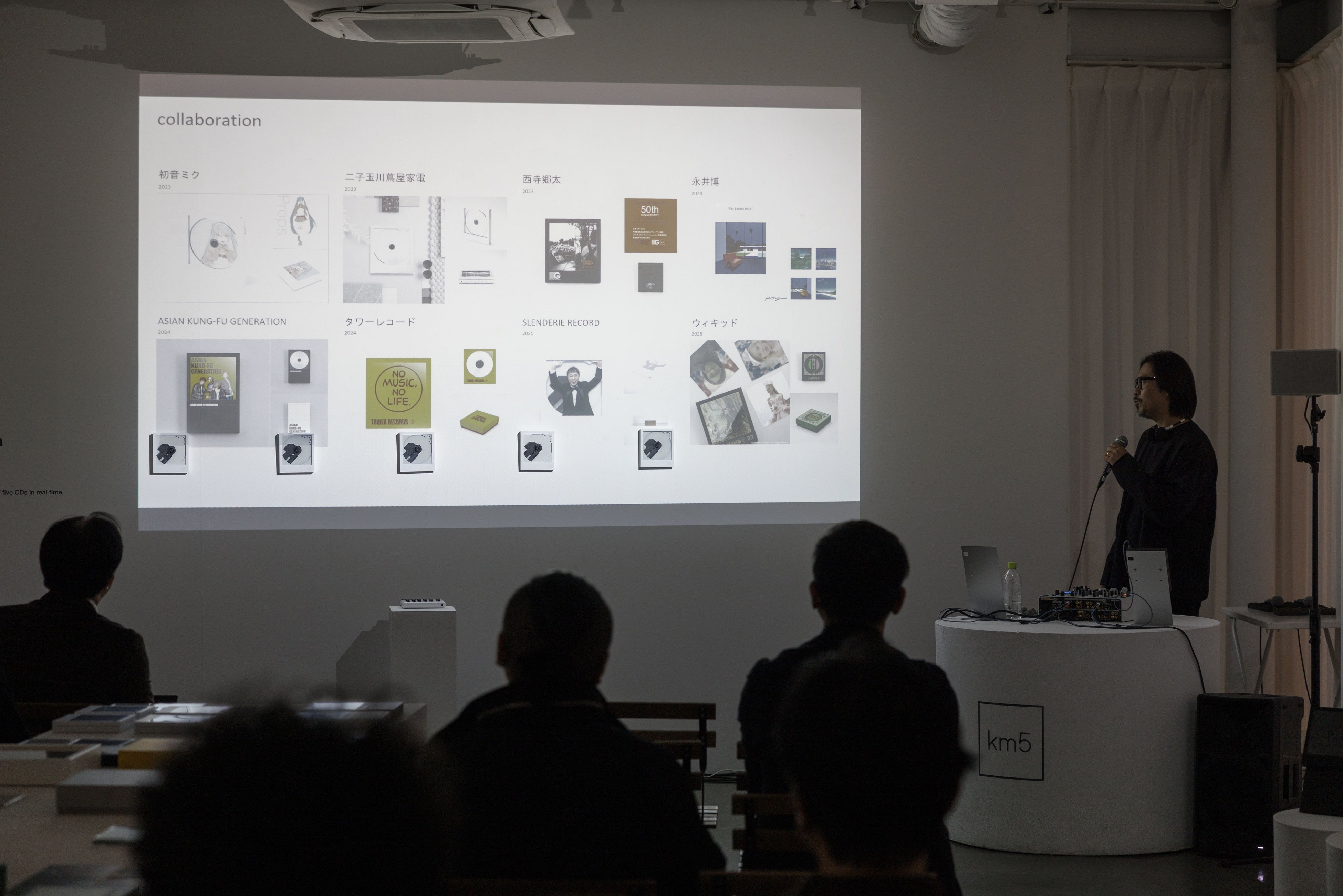 冒頭のプレゼンテーションでは、代表 兼 デザイナーの船山より、5年間の御礼のご挨拶とあわせて、今後のkm5ブランドのコンセプトと現在新たに検討しているプロダクトを発表しました。