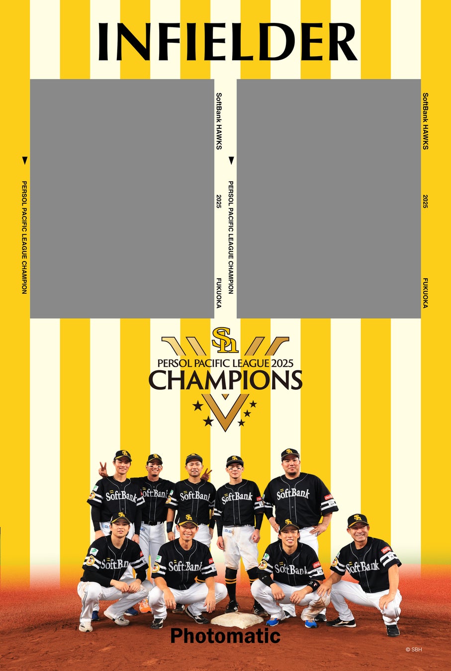 キタムラ・ホールディングス グループのピックハイブ株式会社(本社:東京都新宿区、代表取締役社長 兼 COO:大迫 由典)が運営するセルフフォトブランド「Photomatic(フォトマティック)」は、プロ野球球団「福岡ソフトバンクホークス」のパーソル パ・リーグ優勝を記念して、Photomatic BOSS E・ZO FUKUOKA限定でリーグ優勝記念フレームを発売します。フレームは、ポジションごと(投手・捕手・内野手・外野手)の全4種が登場。ホークスのリーグ優勝の喜びを胸に、期間限定のコラボレーションフレームで記念撮影をお楽しみください。