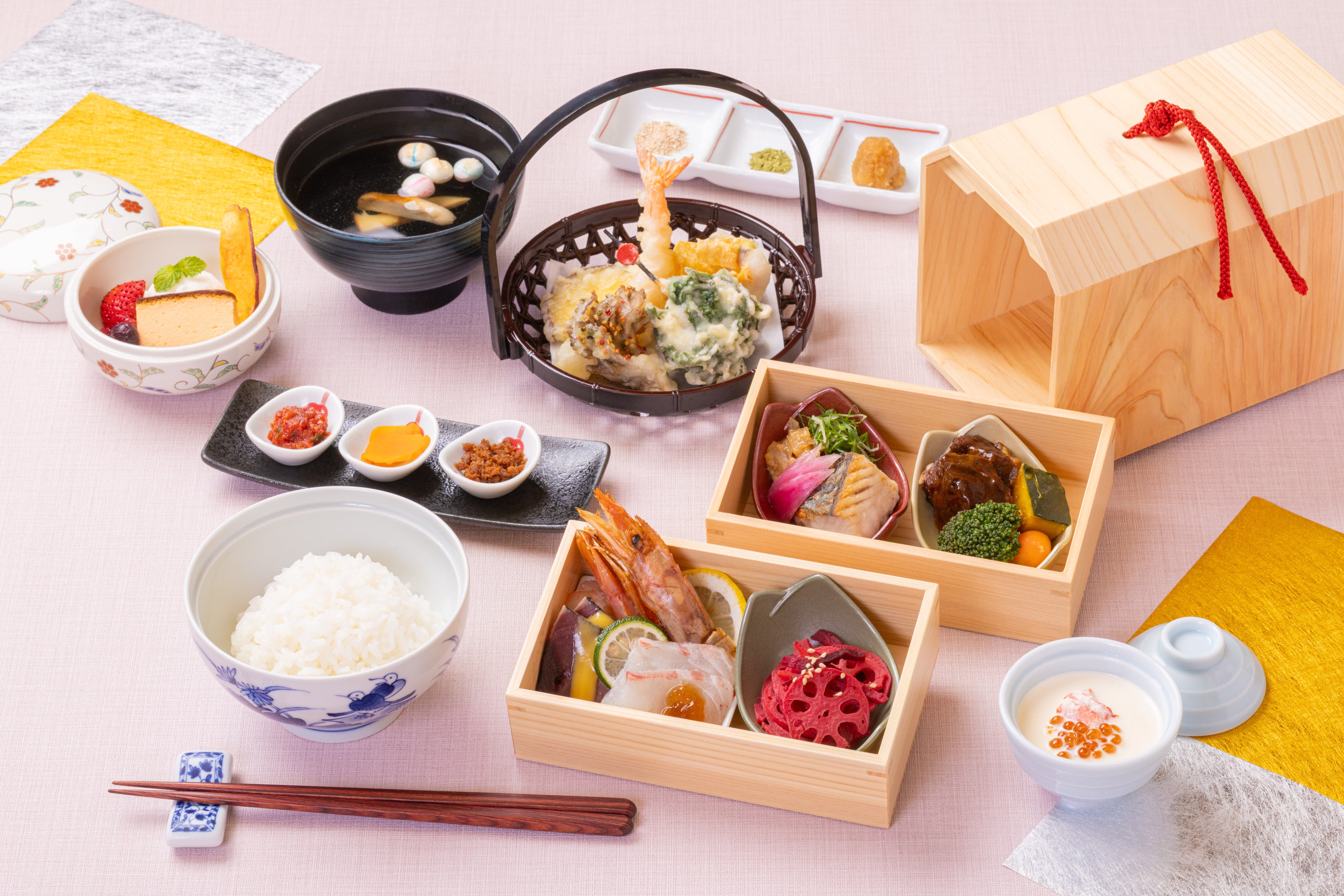 メニューのテーマは「炊飯ジャーのふたを開ける瞬間のわくわく感」。玉手箱を模した容器には彩り豊かな食材や秋冬らしい味付けをしたお料理をご用意しました。