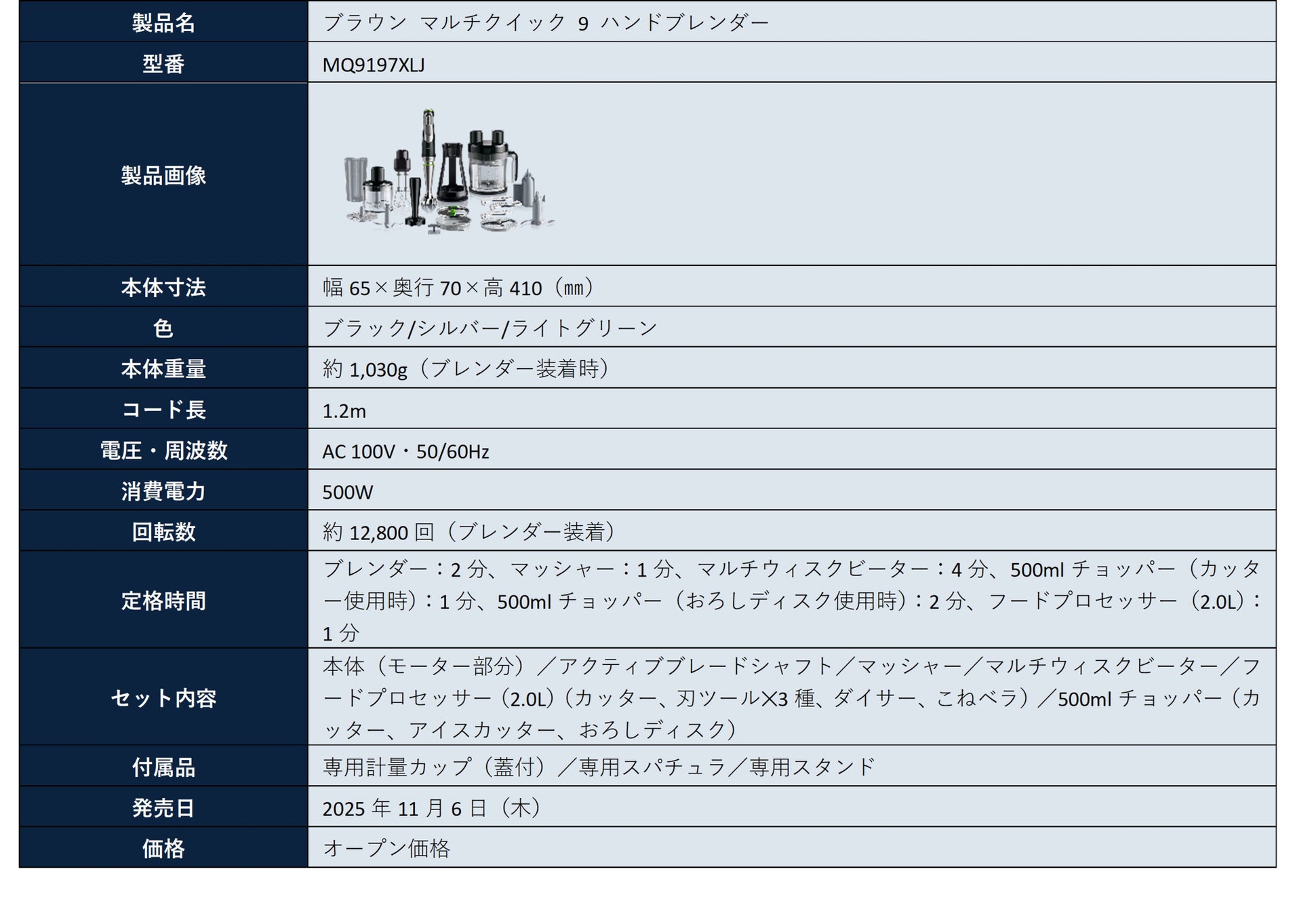 業界最多 1台14役で料理の創造力を格上げ!圧倒的パワーのフラッグシップモデルが進化「ブラウン マルチクイック 9 ハンドブレンダー」2025年11月6日(木)新発売