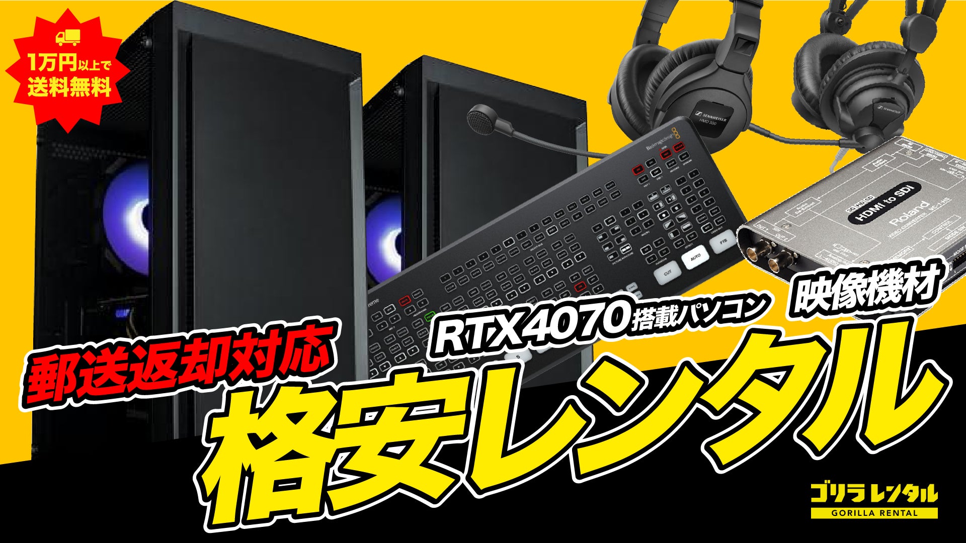 ゴリラレンタルは、プロ品質の映像・配信機材を誰でも手軽に使えるレンタルサービスです。