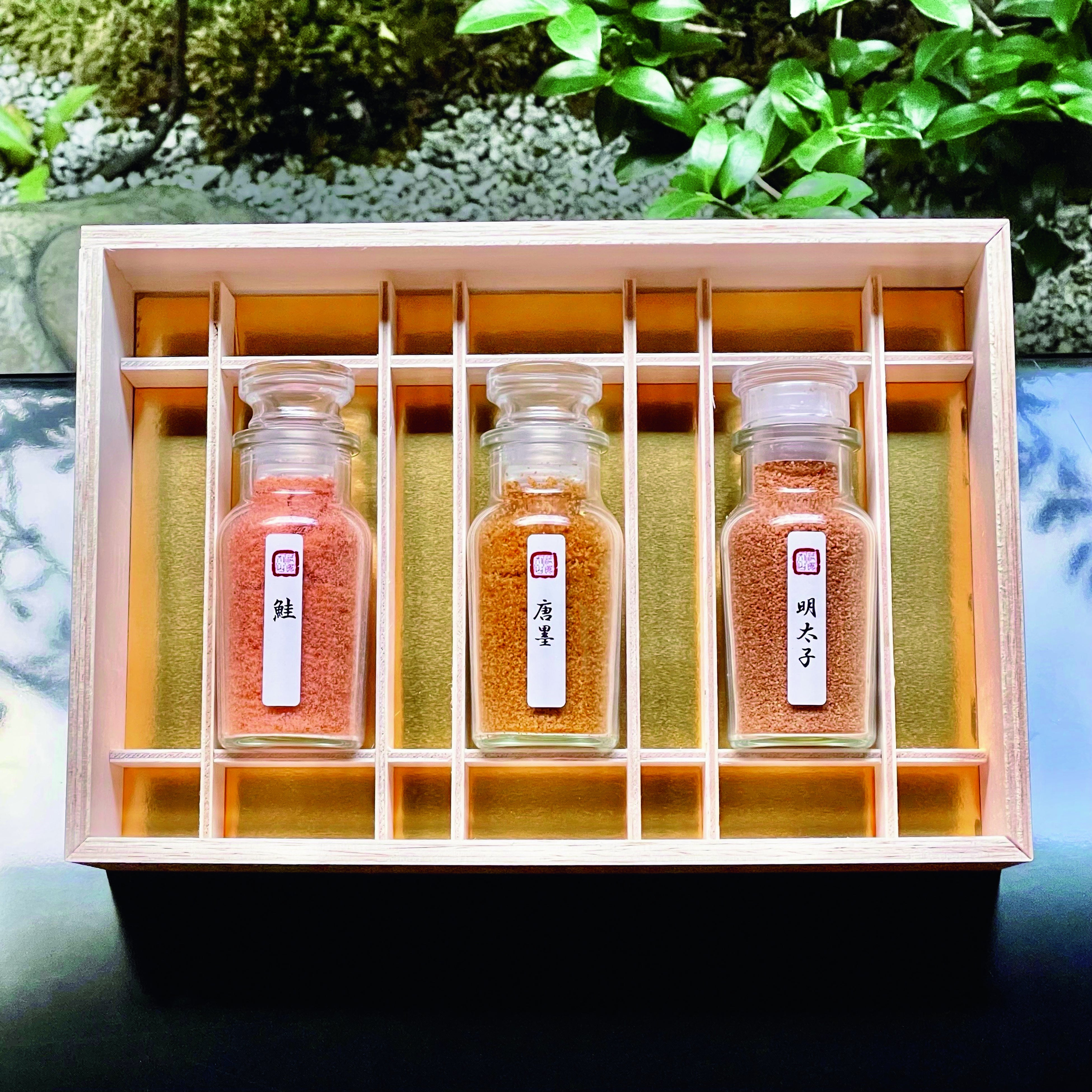 自家製のからすみ、鮭、明太子をフレーク状のふりかけにしました。自家製仕上げにより、素材本来の味わいをご堪能いただけます。