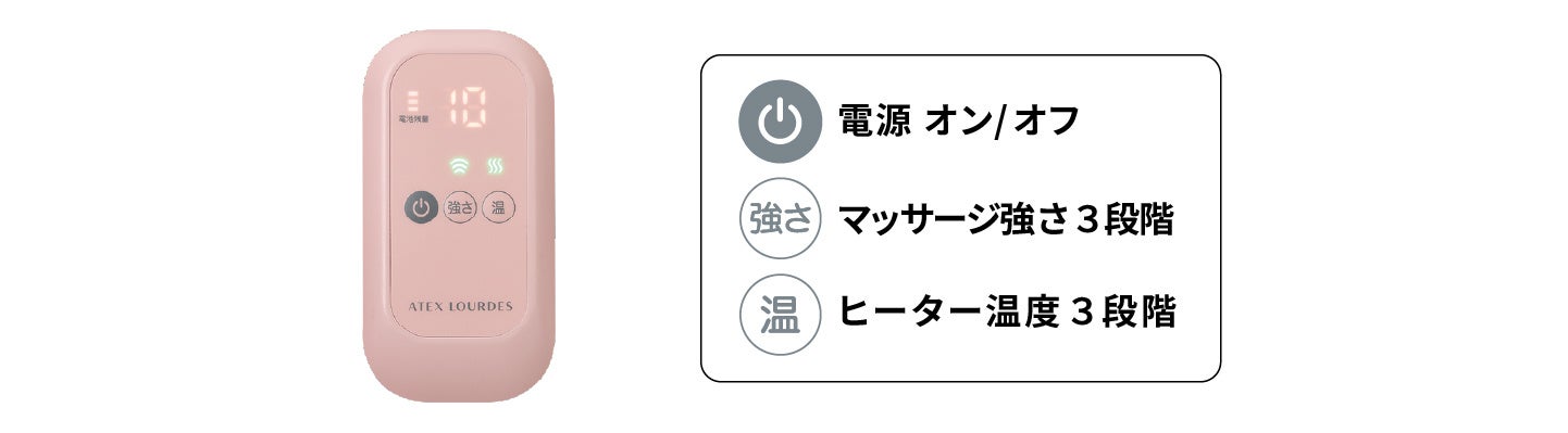マッサージの強さ・ヒーター温度ともに3段階あり、とても簡単に設定できます。その日の気分や足の状態に合わせたマッサージがぐっと気持ちいいです。