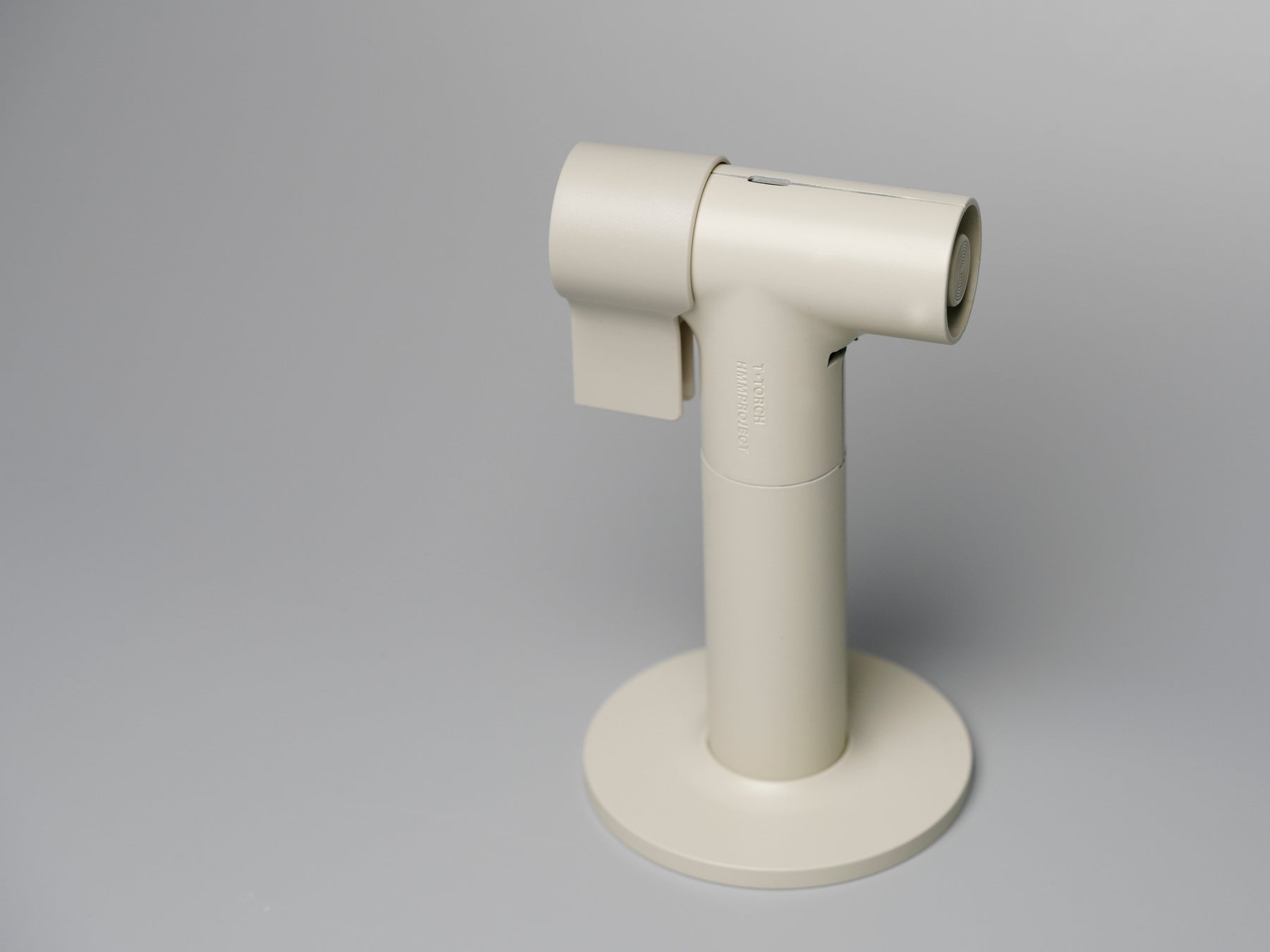 また、トーチ本体を安定して立てて置けるミニマルな専用ベースもあるためインテリアとしても映えます。