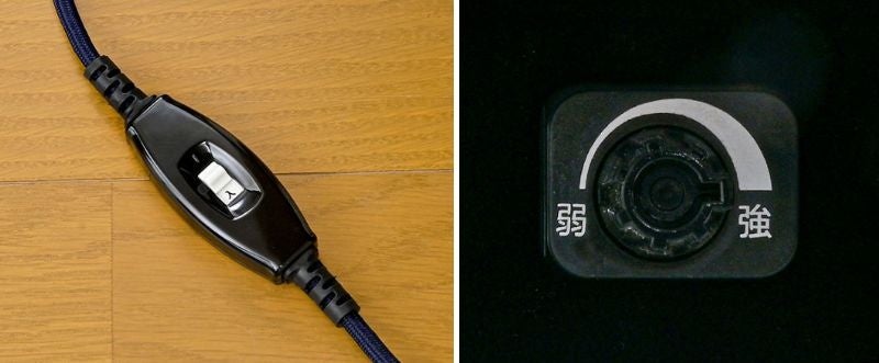 電源のON/OFFスイッチは、手元で操作できるタイプで、くつろいだ姿勢のままでも操作可能です。