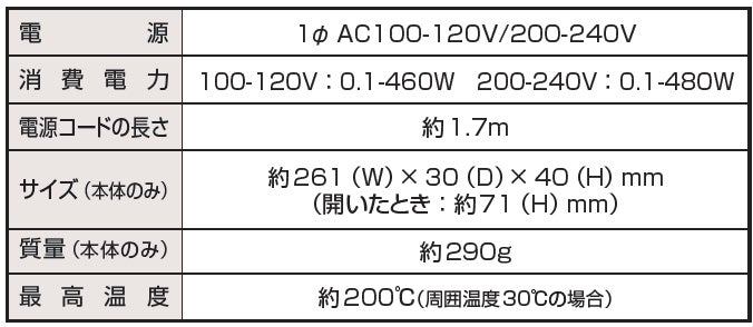 13段階の温度調節/最高温度約200℃ ※周囲温度30℃の場合