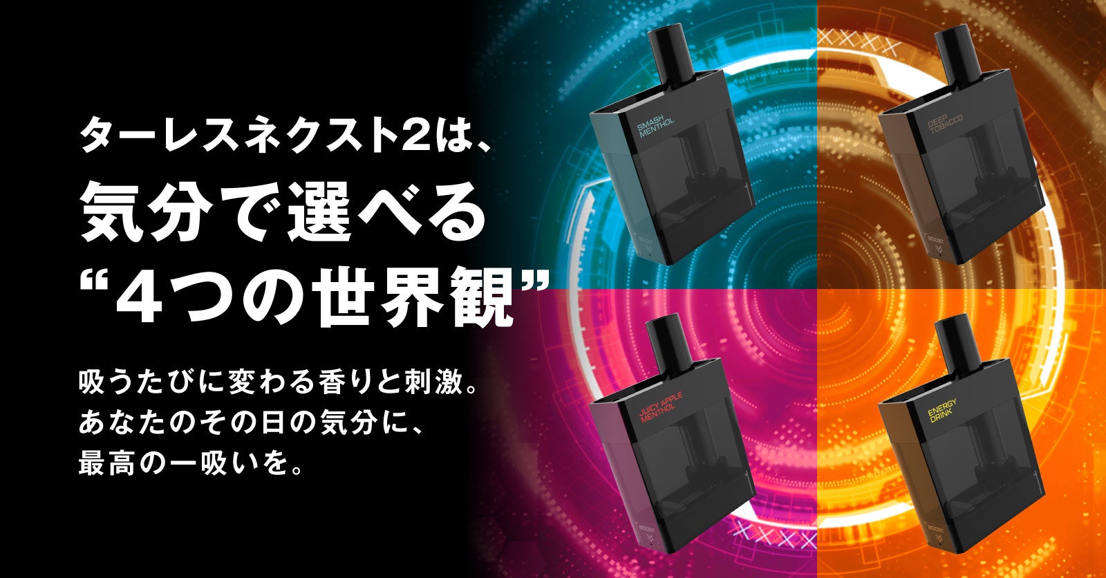 “煙感。すべてをその先へ。” を掲げる「ターレスネクスト2」は、前モデル「ターレスネクスト」で高い評価を得た吸いごたえと携帯性を継承しつつ、味わい・煙量を大幅にアップデート。さらに、ダイレクトリキッド供給システムを搭載することで、圧倒的な吸いごたえを実現しました。