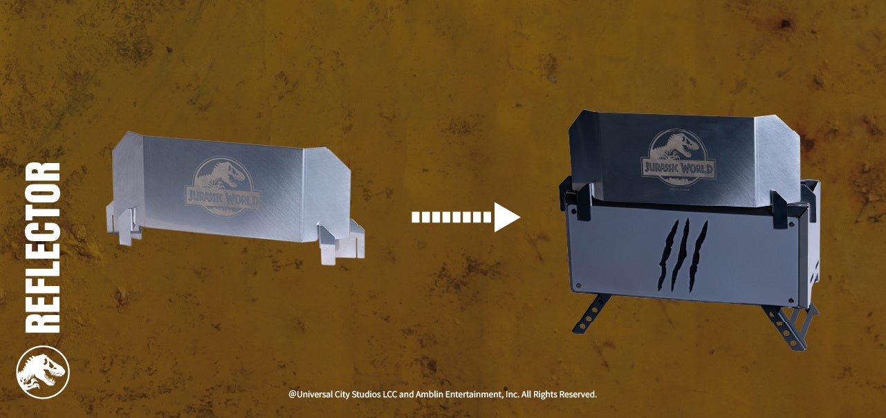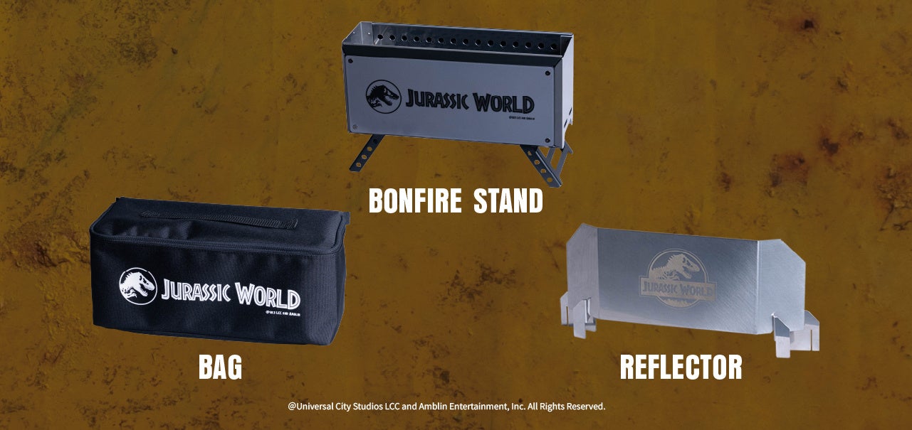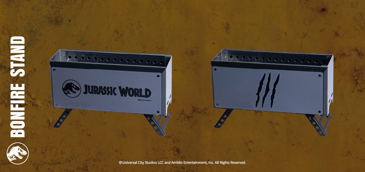 ジュラシック・ワールド」の象徴的なロゴをシンプルに施した特別デザインの焚火台。落ち着いた印象のグレーで仕上げ、さまざまなアウトドアシーンに馴染みます。細部までこだわり、シンプルでありながらも力強さと存在感も感じられるデザインです。