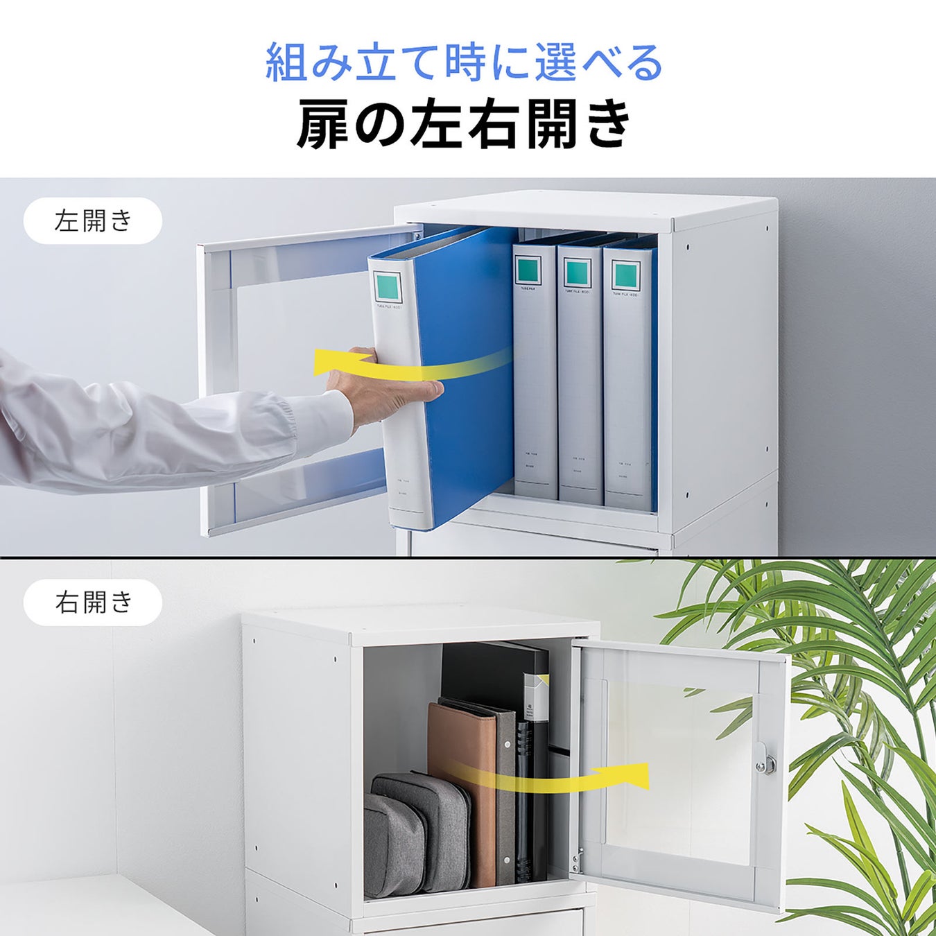 付属の鍵(2本)で施錠できるため、重要書類や電子機器の保管にも安心です。