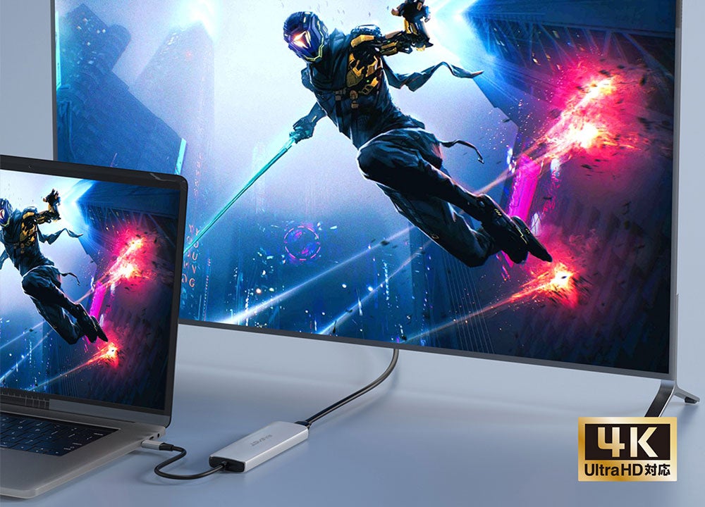 DisplayPort Alternate Modeに対応したデバイスであれば、USB-C経由で高精細な4K映像を出力できます。