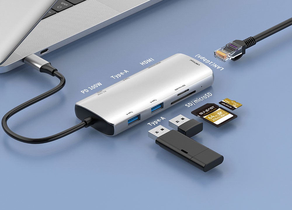 さらに8in1モデルにはLANポートも装備し、安定した有線インターネット接続を実現します。