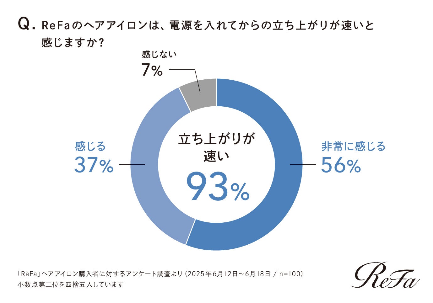 そして、美容にかける時間が限られている方々にとって、重要なのが、短時間で確実に満足度の高い仕上がりを叶えること。ReFaのヘアアイロンは、電源の立ち上がりスピードが速く(リファストレートアイロン プロの場合、約30秒で180度まで昇温)など、電源を入れてからすぐにスタイリングを開始できることも高評価につながっています。