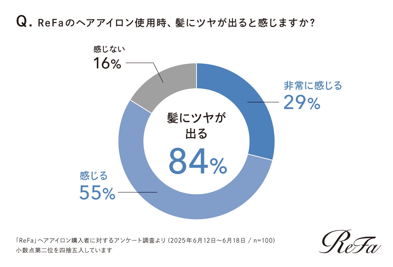 株式会社MTG(本社:愛知県名古屋市、代表取締役社長:松下剛)は、美容ブランド「ReFa(リファ)」のヘアアイロン製品購入者を対象に満足度調査を実施しました。