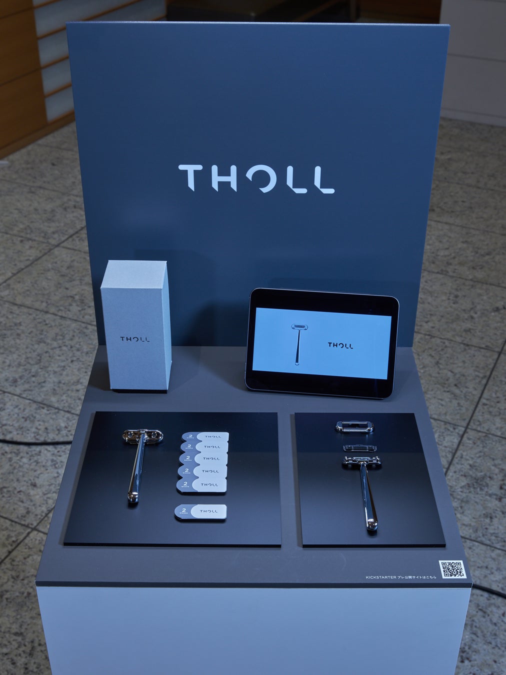 2つ目の新商品として、世界初の替刃式5枚刃フルメタルレザーの「THOLL」を発表いたしました。「THOLL」は磁石でヘッドパーツが装着でき、プラスチック樹脂を一切使用していません。サステナビリティーと経済性を両立した、唯一無二のカミソリです。