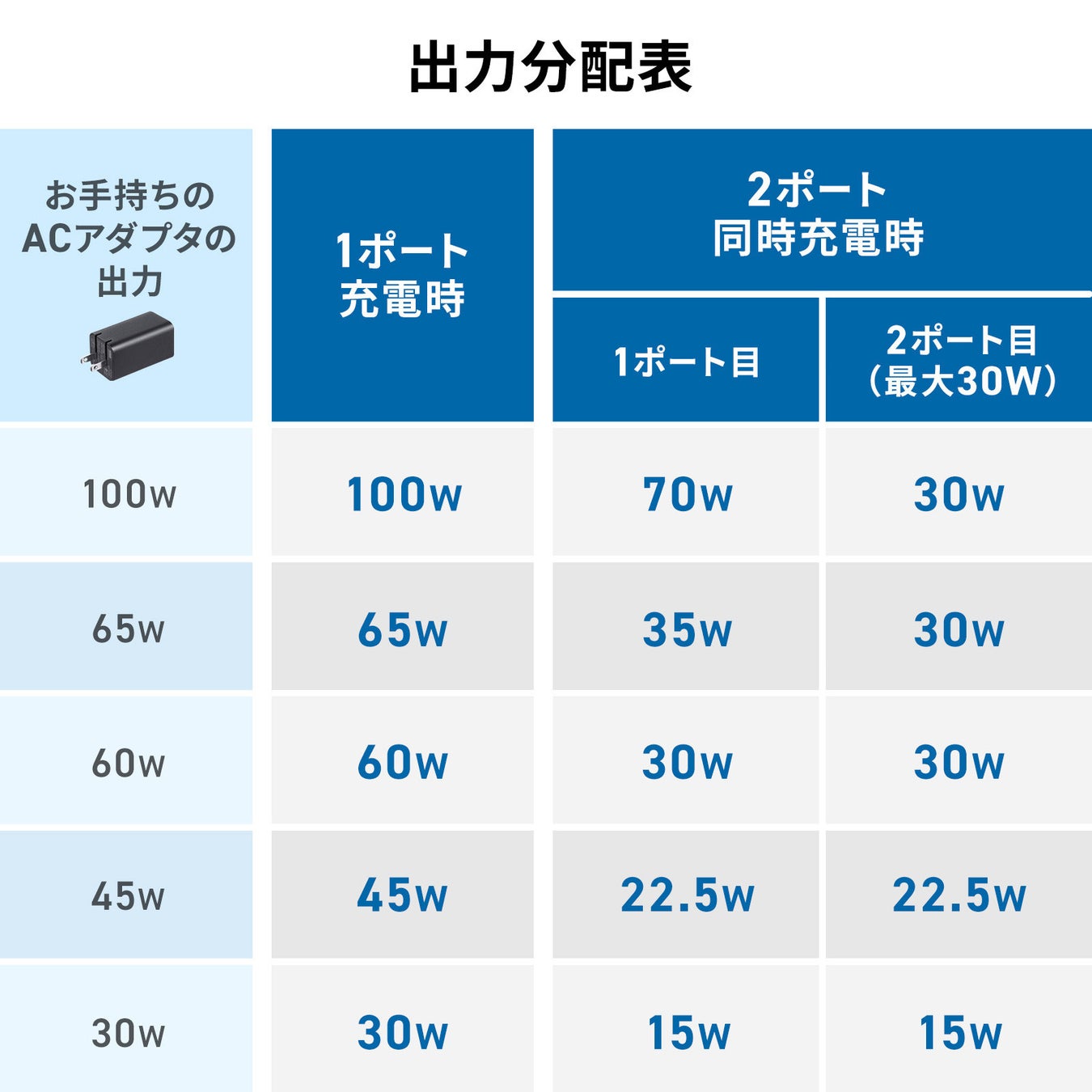 最大100WのUSB Power Deliveryに対応し、接続機器に合わせて自動で電力を分配します。