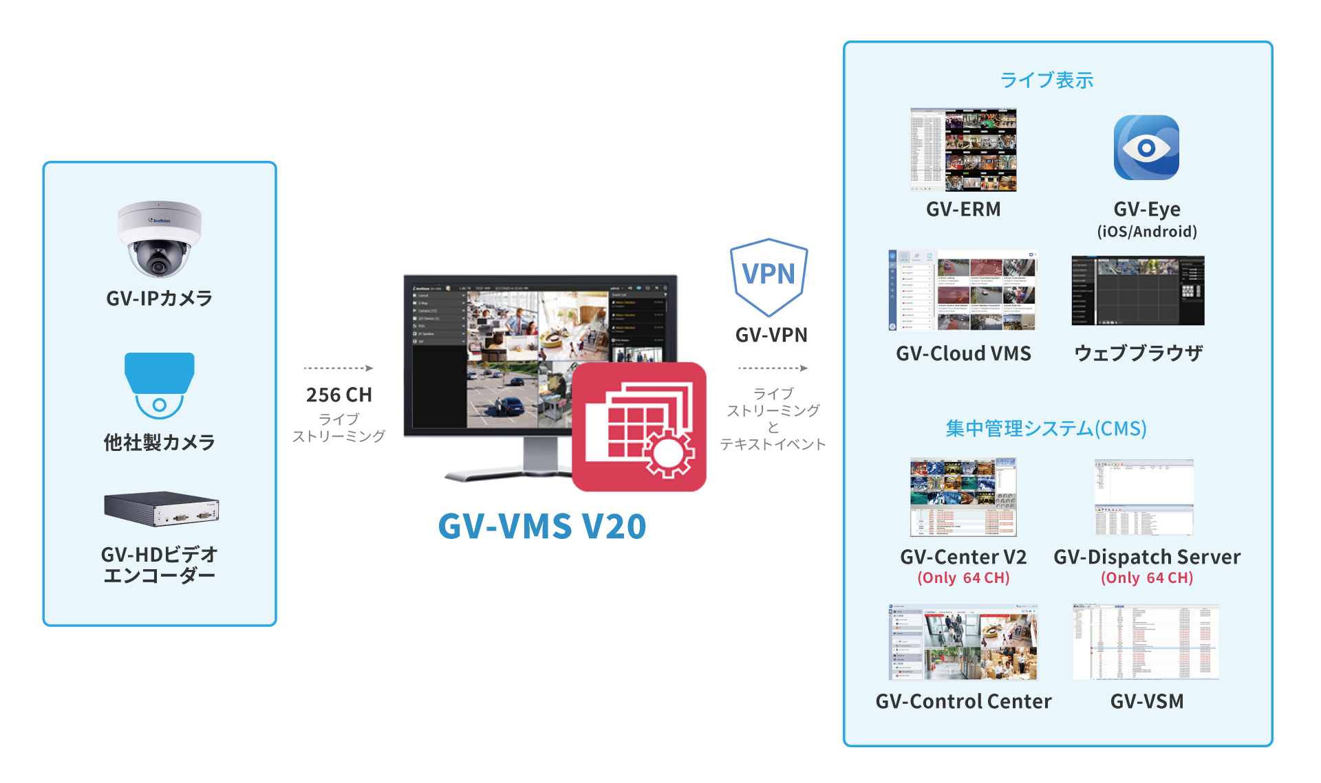 *64カメラ以上のカメラ接続の際は、別途ライセンスが必要となります。