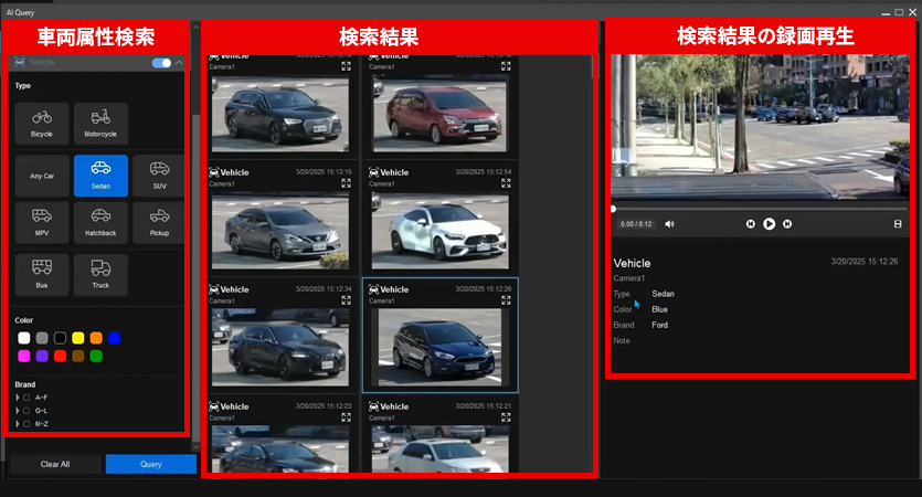 車両属性の検索・録画再生