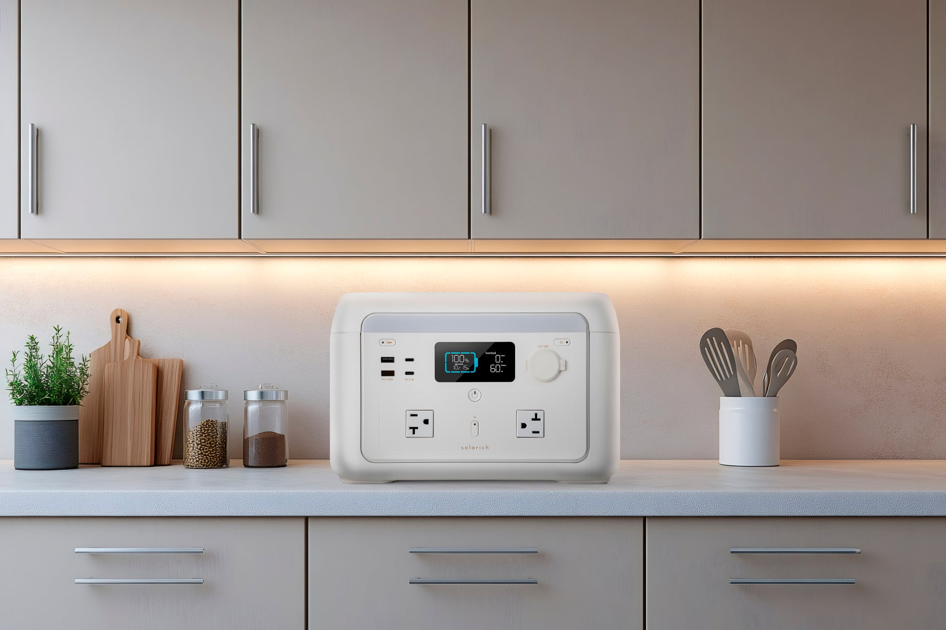 従来のポータブル電源は、災害時やアウトドアなど特別な場面でのみ使われることが多く、日常生活に定着しにくい点が課題であった。solarich1000は、暮らしの中に自然に溶け込み、毎日使いたくなる新しいポータブル電源である。シンプルで空間に調和するデザインや、キャスターによる移動のしやすさなど、機能性と美しさを両立。