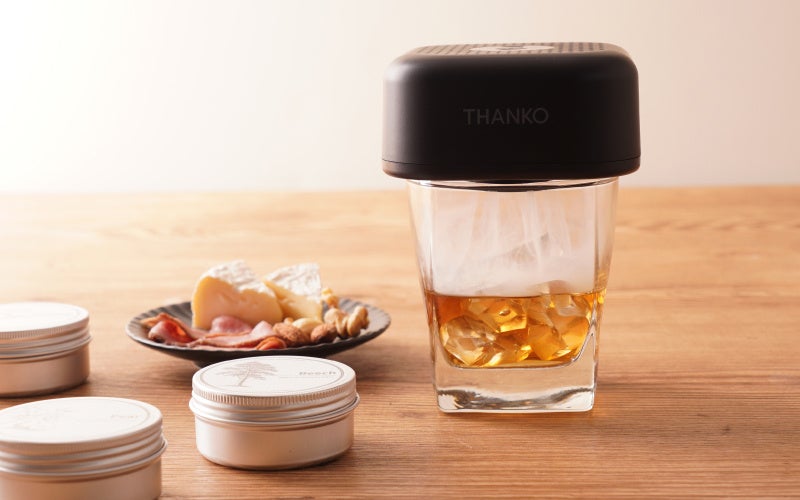 付属のポットでチーズや卵など食材を燻製できるのはもちろん、本体をお手持ちのグラスにセットしてウイスキーなどの燻製も可能。