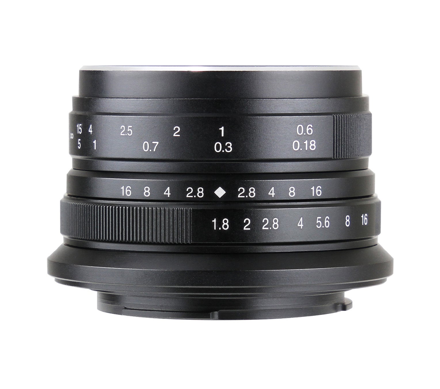 小型・軽量な開放F値1.8の大口径広角単焦点レンズ。最短撮影距離0.18mで、高い近接撮影能力を備えています。アルミニウム合金を使用した上質な外観。絞りリングはクリック感のない無段階式で、動画撮影も楽しめます。