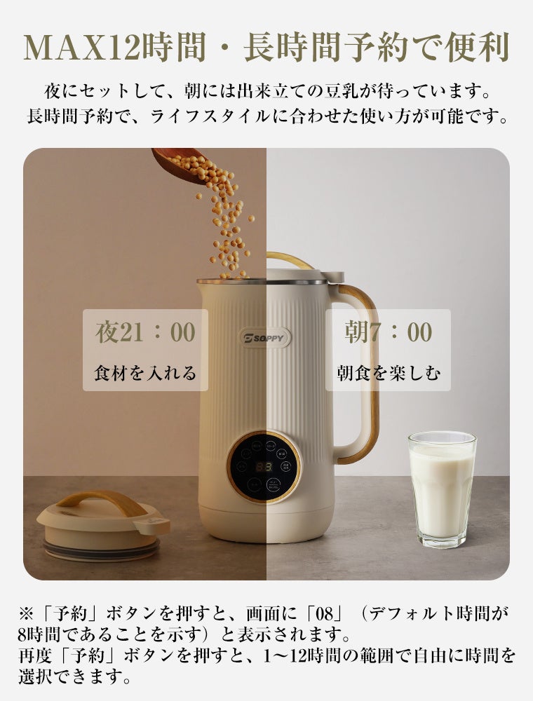 12時間予約・自動洗浄付き家庭で手軽に豆乳が作れる多機能「SOPPY豆乳メーカー」を新発売
