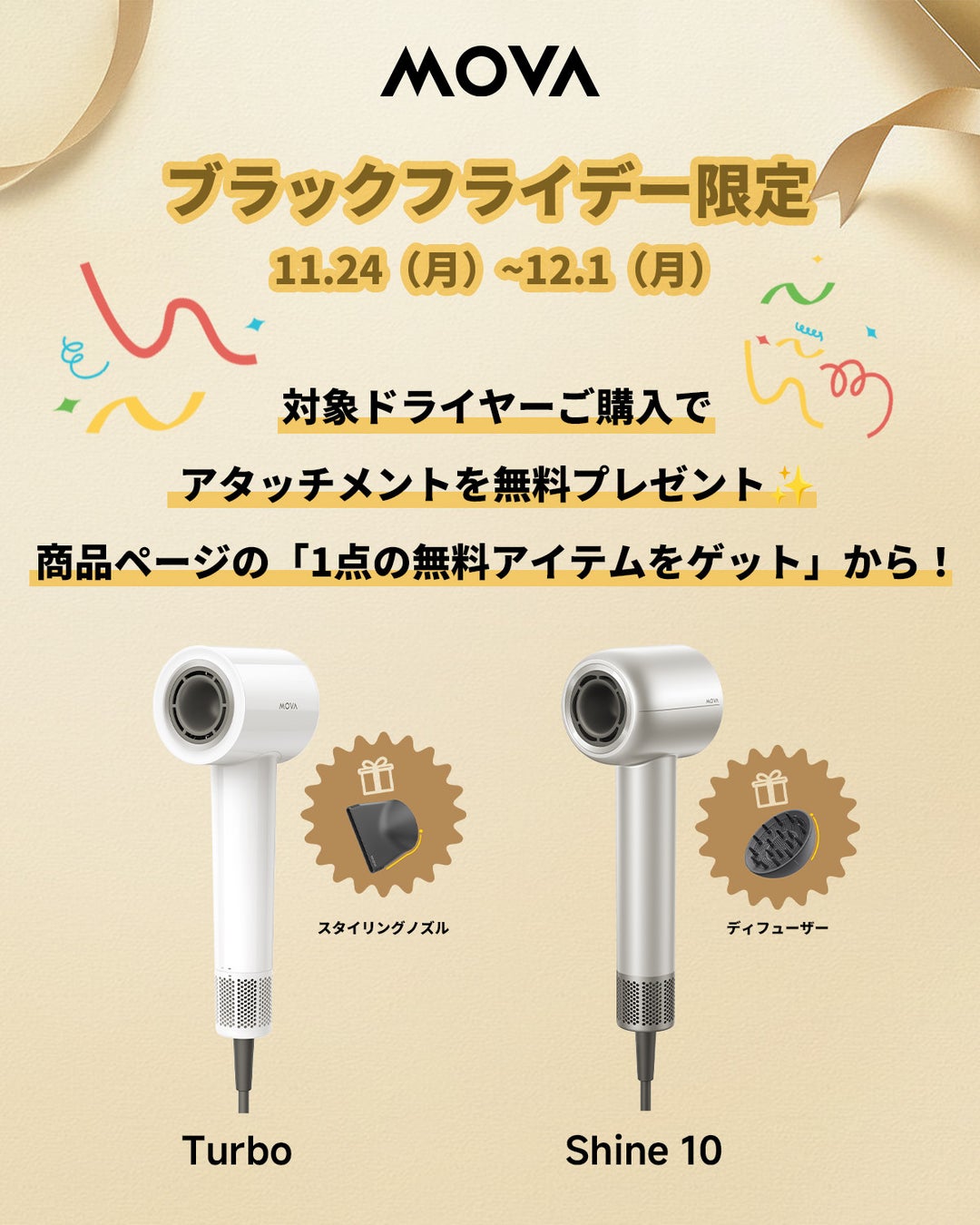 対象ドライヤーをご購入いただくと、専用アタッチメントを無料でプレゼントいたします。