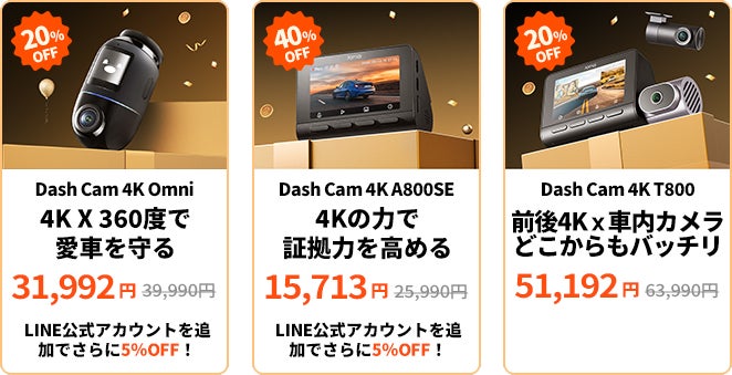 この度、70mai株式会社は、Amazonブラックフライデーに合わせ、最大で実質45%オフ相当となる超大型キャンペーンを実施します本キャンペーンは、通常の最大40%オフ割引に、期間限定の追加クーポン、そして購入者全員への特典が重なることで実現する、まさに「今年最後の大勝ち」となるお得な機会です。「24時間の安心」を、最高のコストパフォーマンスで迎え入れましょう。