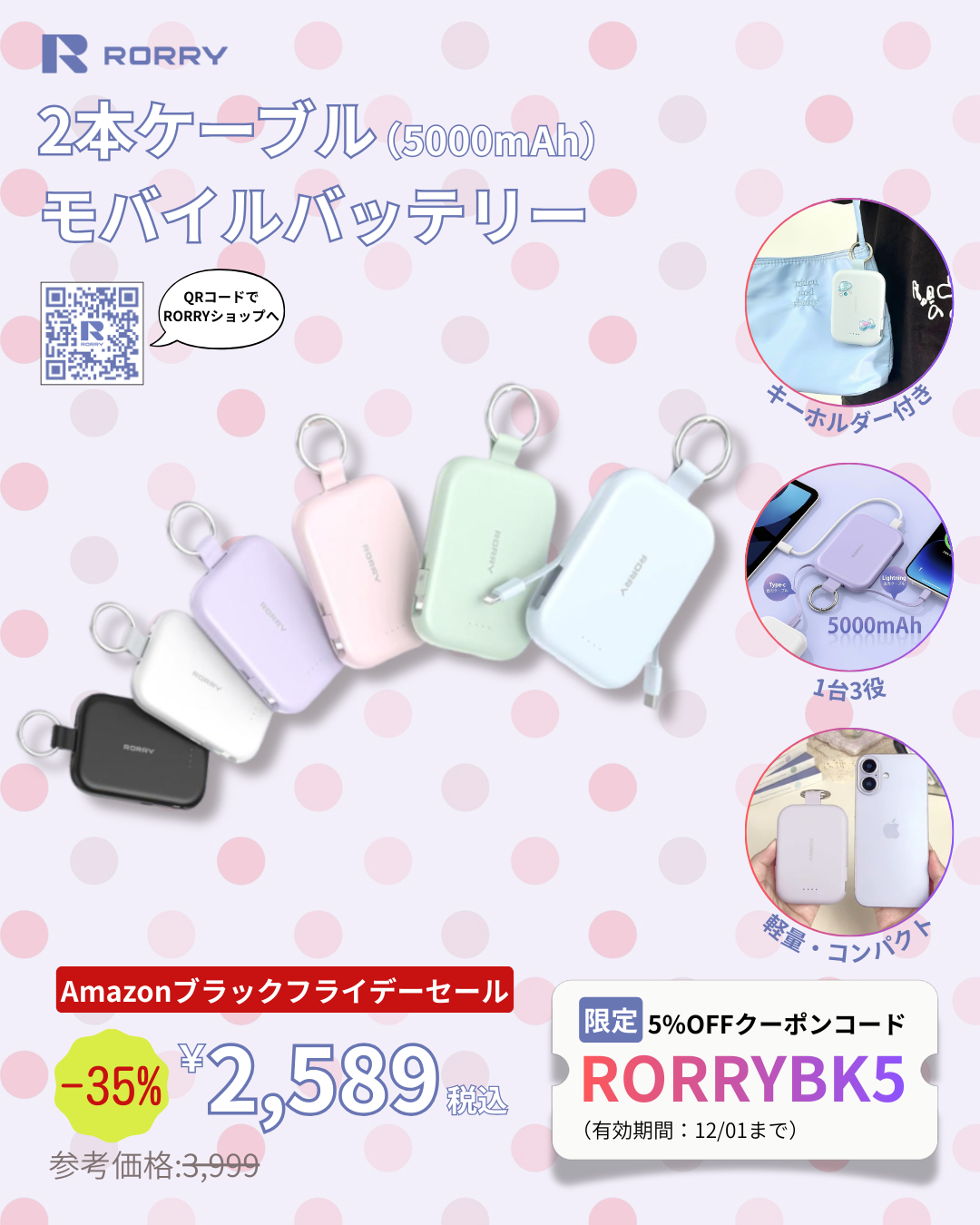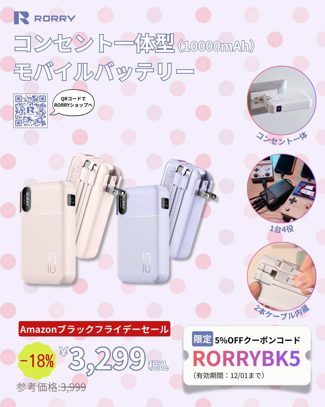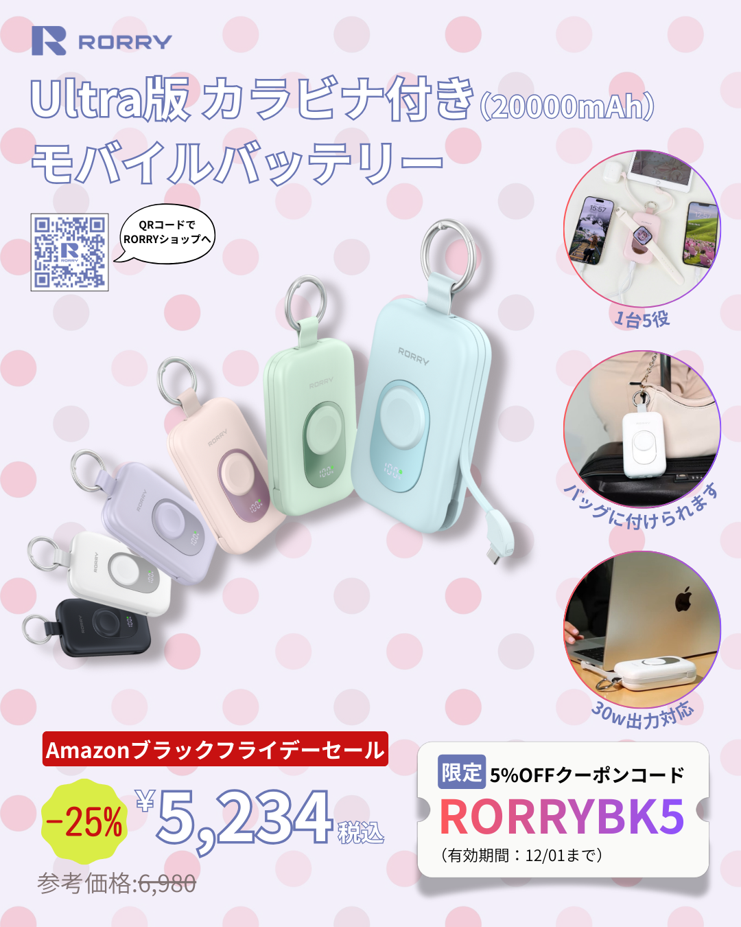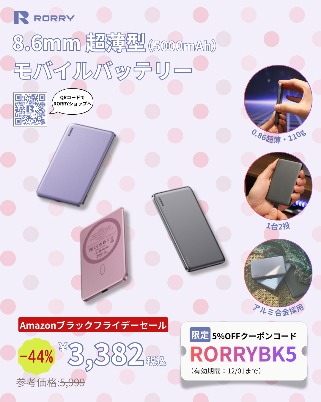 高い技術力を活かし、デザイン性にもこだわった充電器・モバイルバッテリー製品を手掛けるRORRY(ロリー)は、2025年12月1日のAmazonブラックフライデー最終日に、冬の外出や出張にぴったりなおすすめアイテムを厳選してご紹介します。
