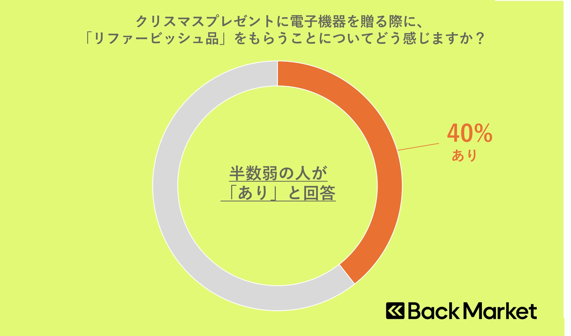 プレゼントをもらう側は中古品・リファービッシュ品に前向きで、約4割が肯定的