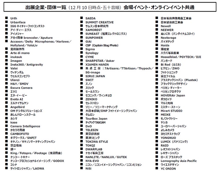 ■主な出展分野:カメラ、レンズ、フォト・ビデオアクセサリー、プリンター、