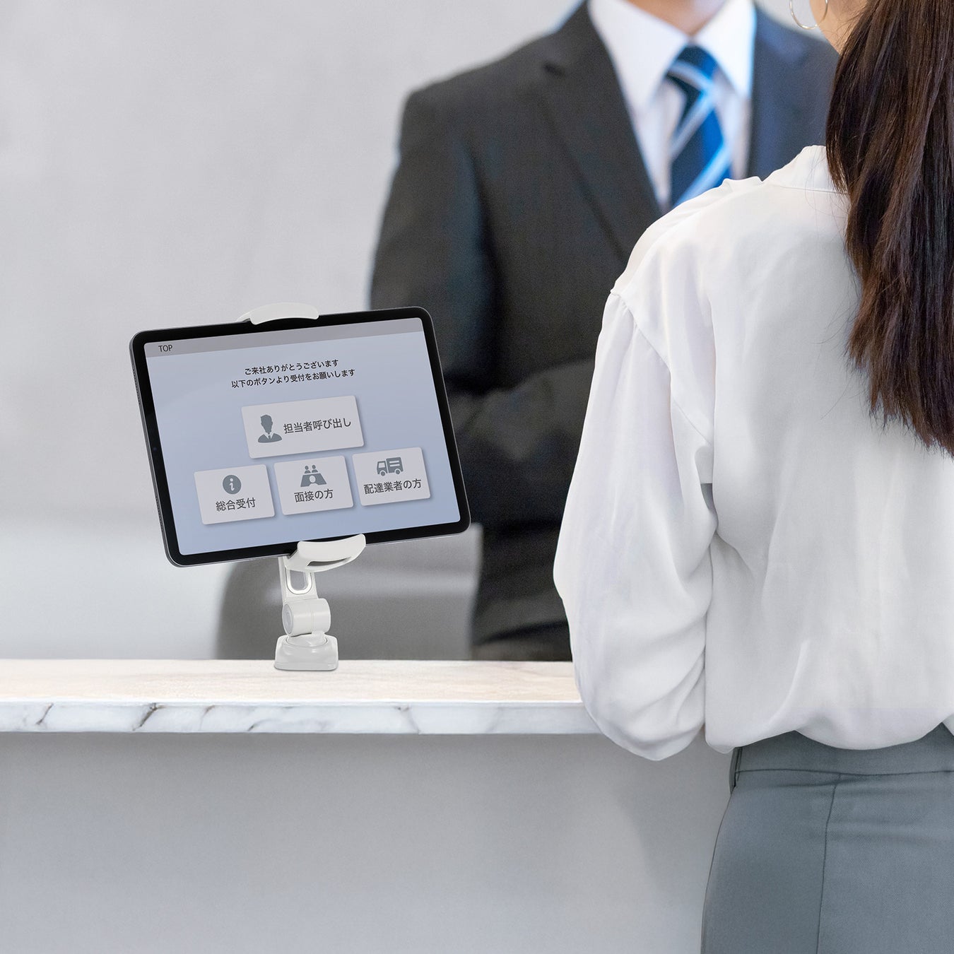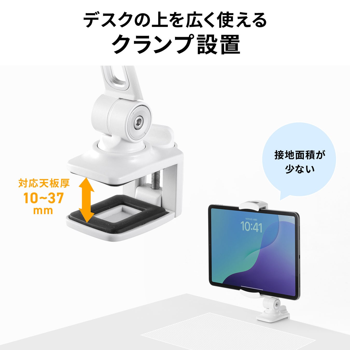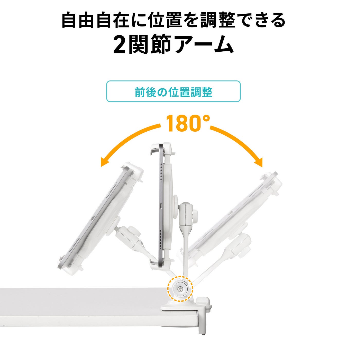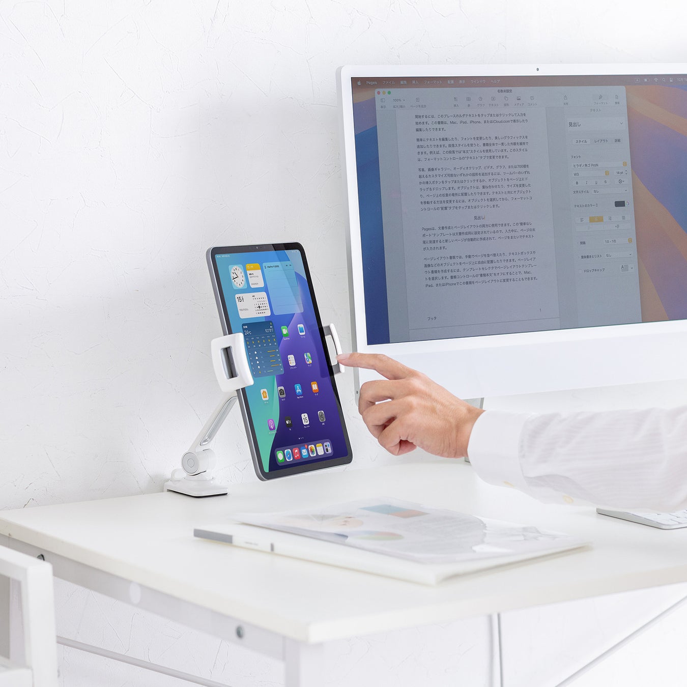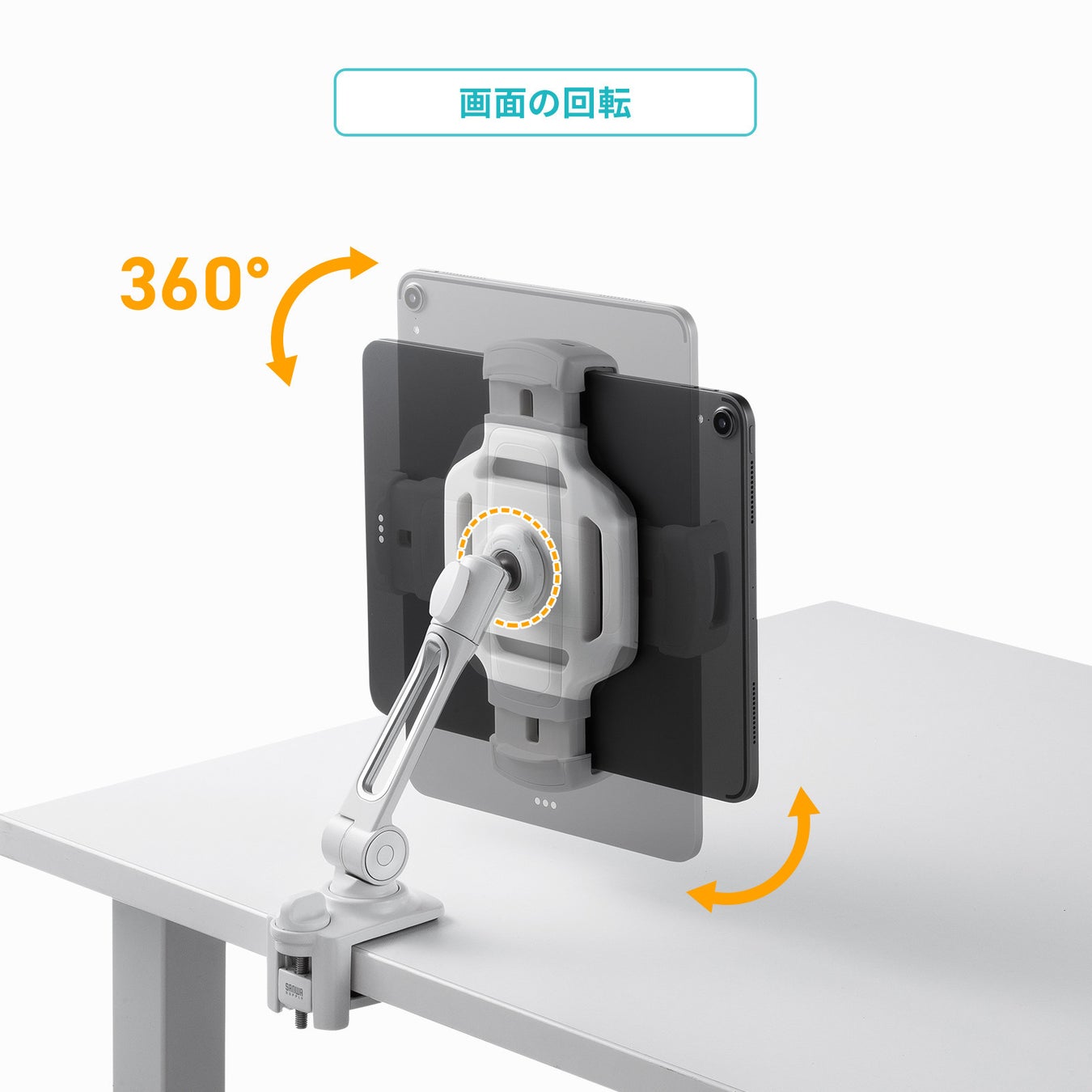 デスクの端に固定して、タブレットを操作しやすい位置に固定できるアームホルダーです。
