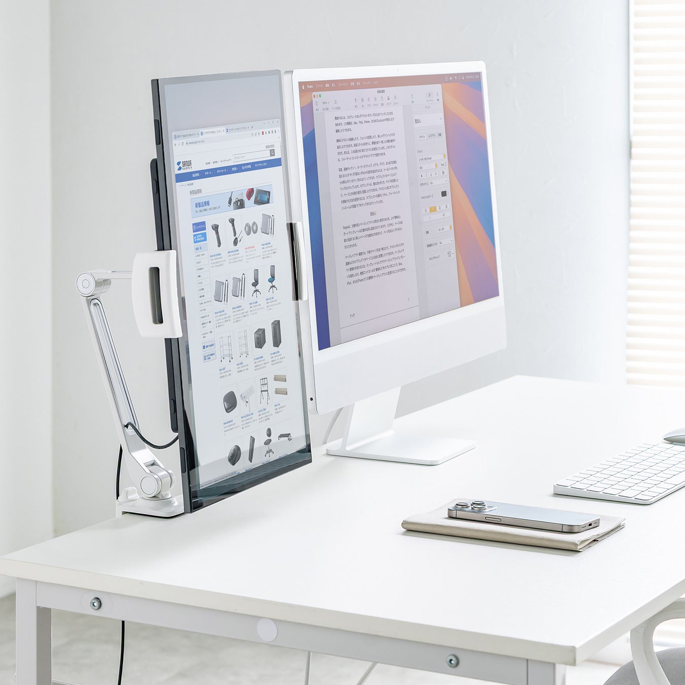 17.3インチまでのモバイルモニター、タブレットなどを挟むことができます。