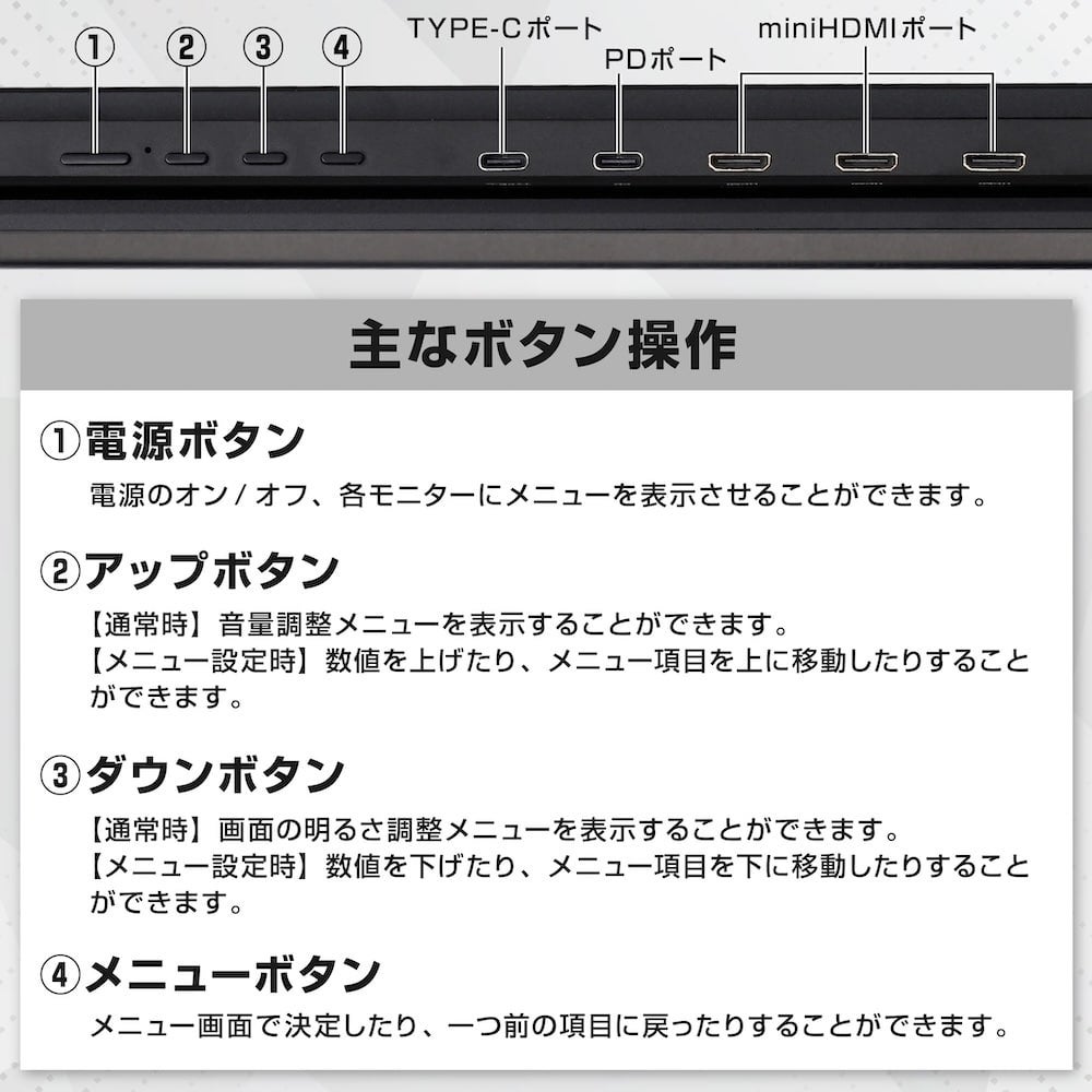 ・接続/USB Type-C ×1(トリプルモニター用)、 mini HDMI ×3(各モニターに直接接続)