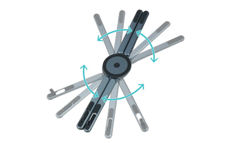 ただ便利なだけでなく、ついつい触りたくなるメカニカルなギミックと、小気味よい操作音がガジェット好きの心をくすぐる『1台4役「カチカチ折りたたみPCスタンド」』です。