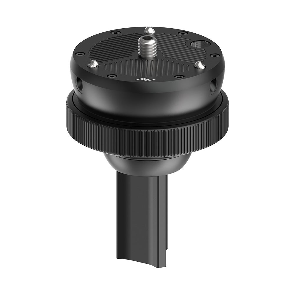 他社製のビデオ雲台などと組み合わせて使用できる、3/8インチネジを備えたレベリングベースです。脚の長さを調整することなく、不整地でも素早く水平を出すことができます。雲台取り付けネジのほかに、取り付けた雲台の回転を防ぐ止めネジも備わっています。