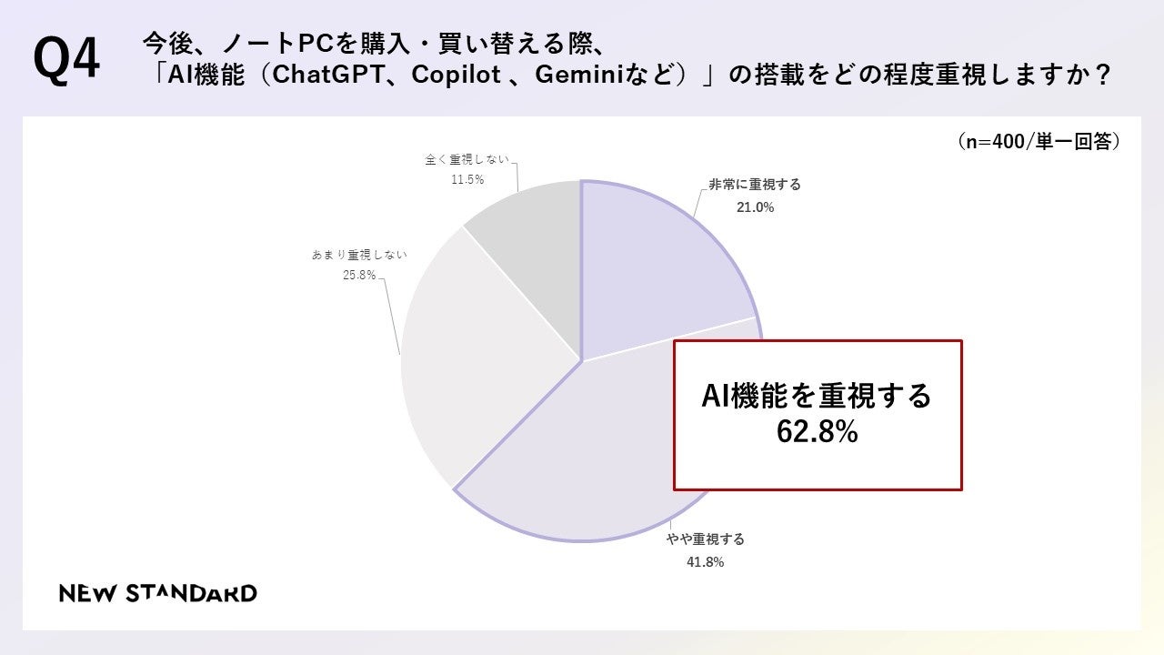 学生の62.8%が今後のPC購入でAI機能を重視すると回答。