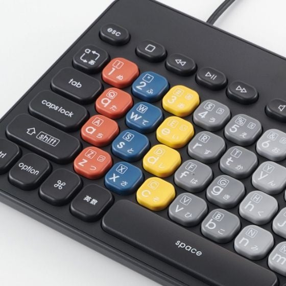 キーを打つ指を覚えやすい配色です。色の判別が苦手な色覚特性のある方でも、色の違いを見分けやすいカラーバランスに調整しています。