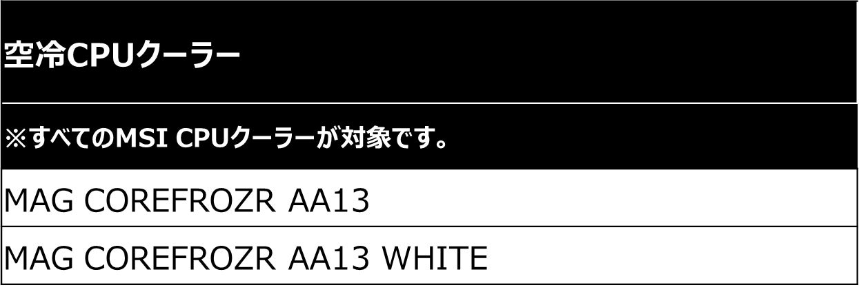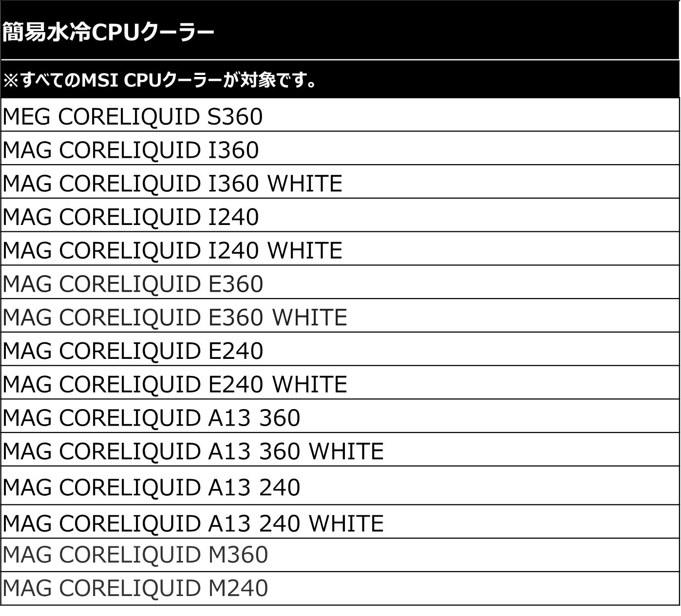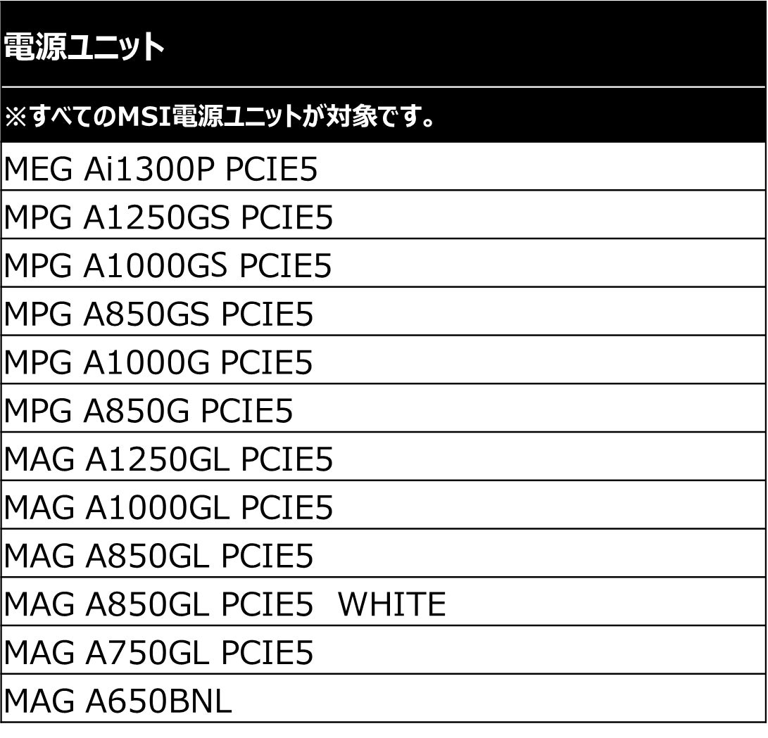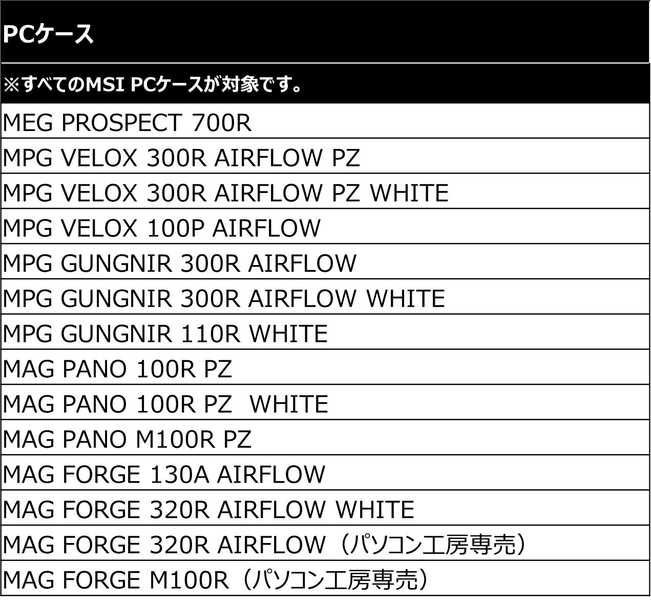 ※MSIのPCケース、水冷クーラー、電源はすべて本キャンペーンの対象です。上記に記載している製品は一部抜粋です。