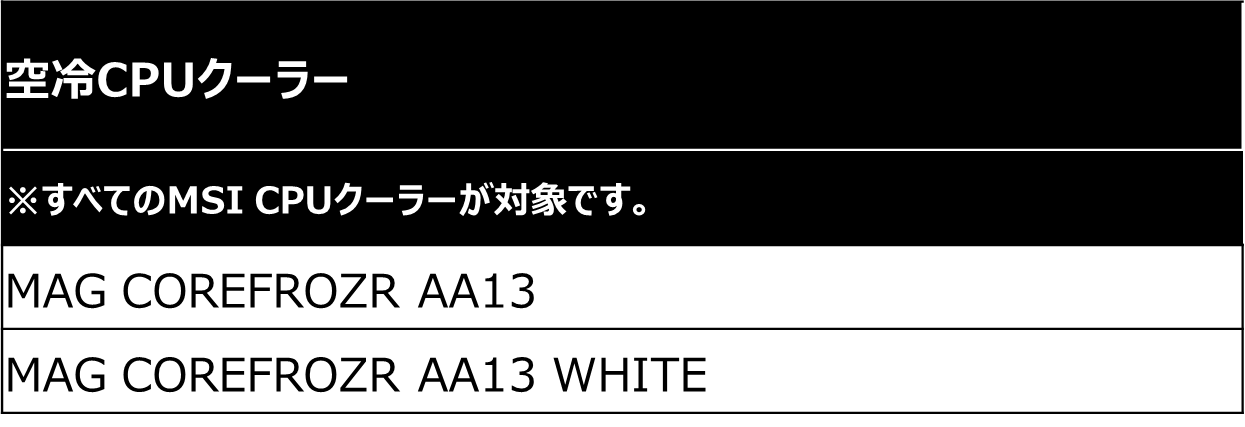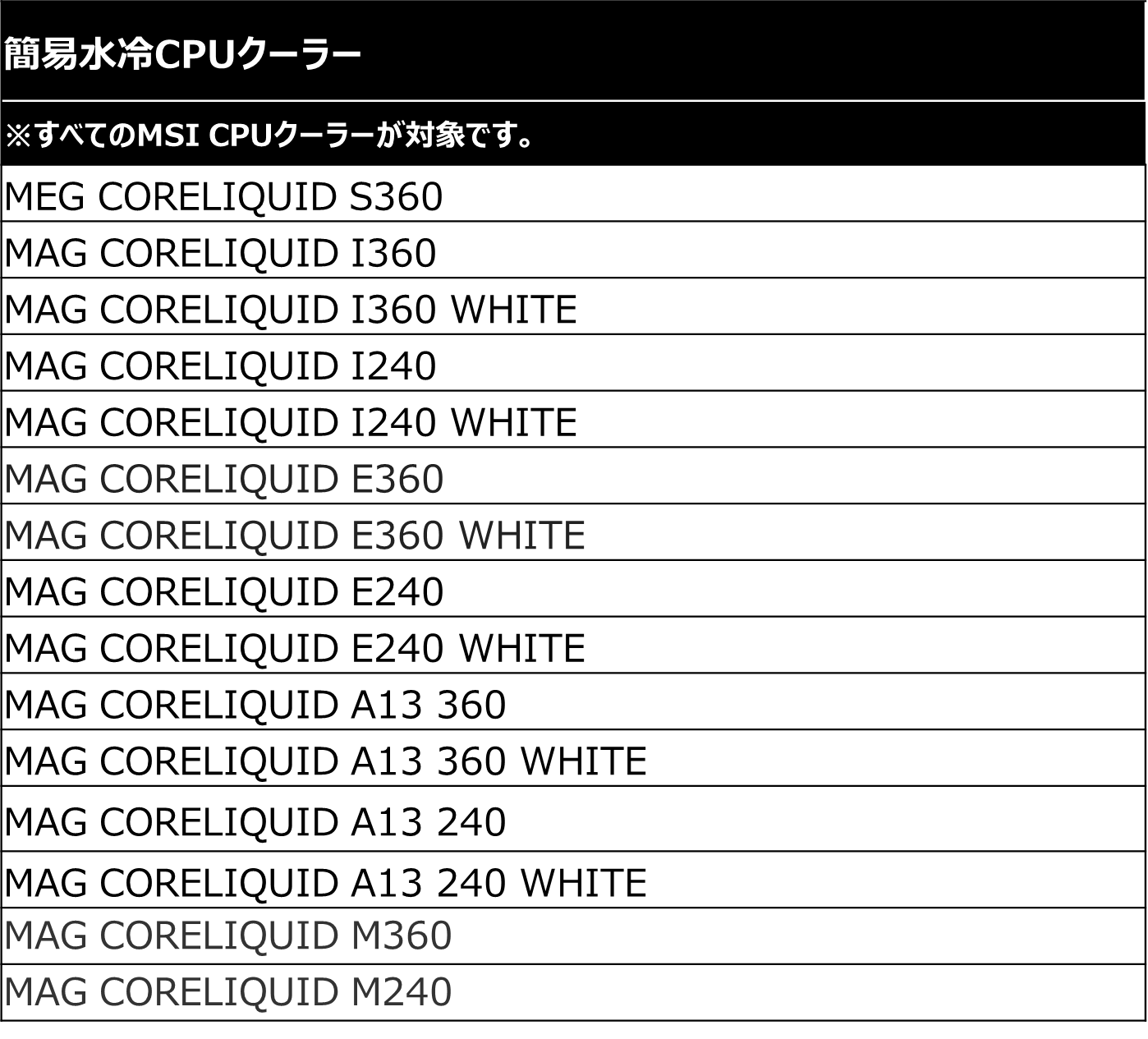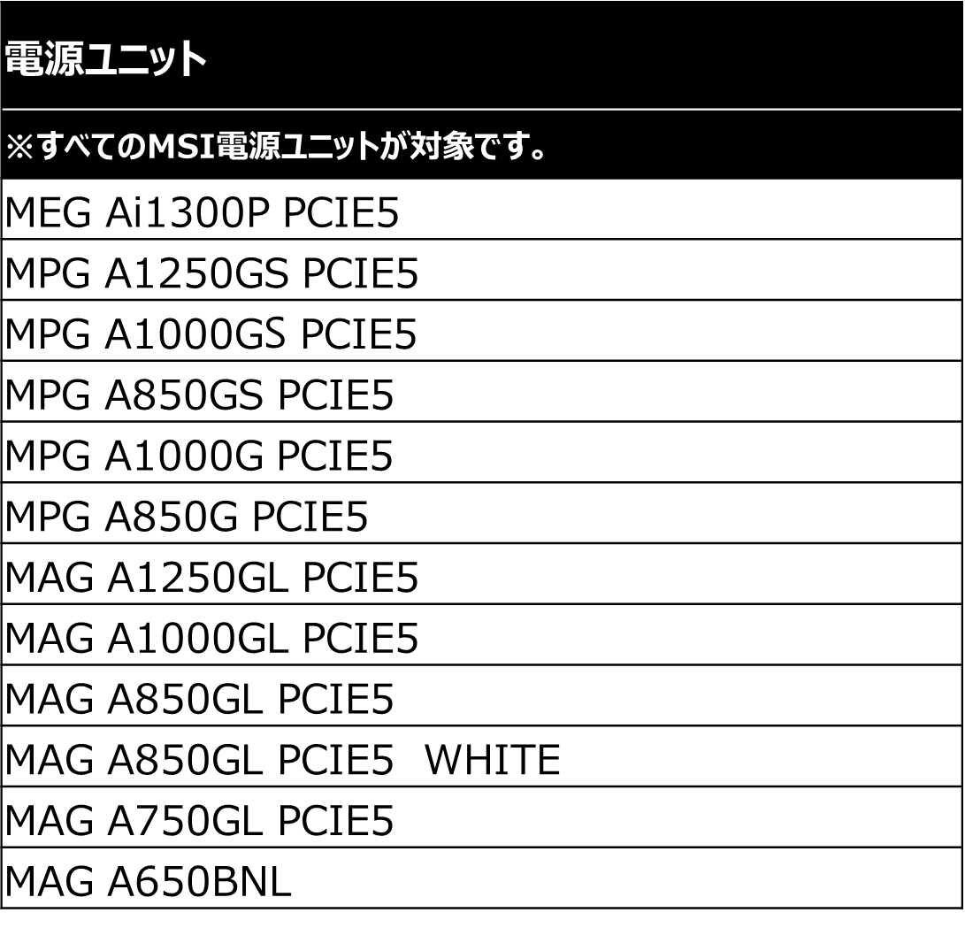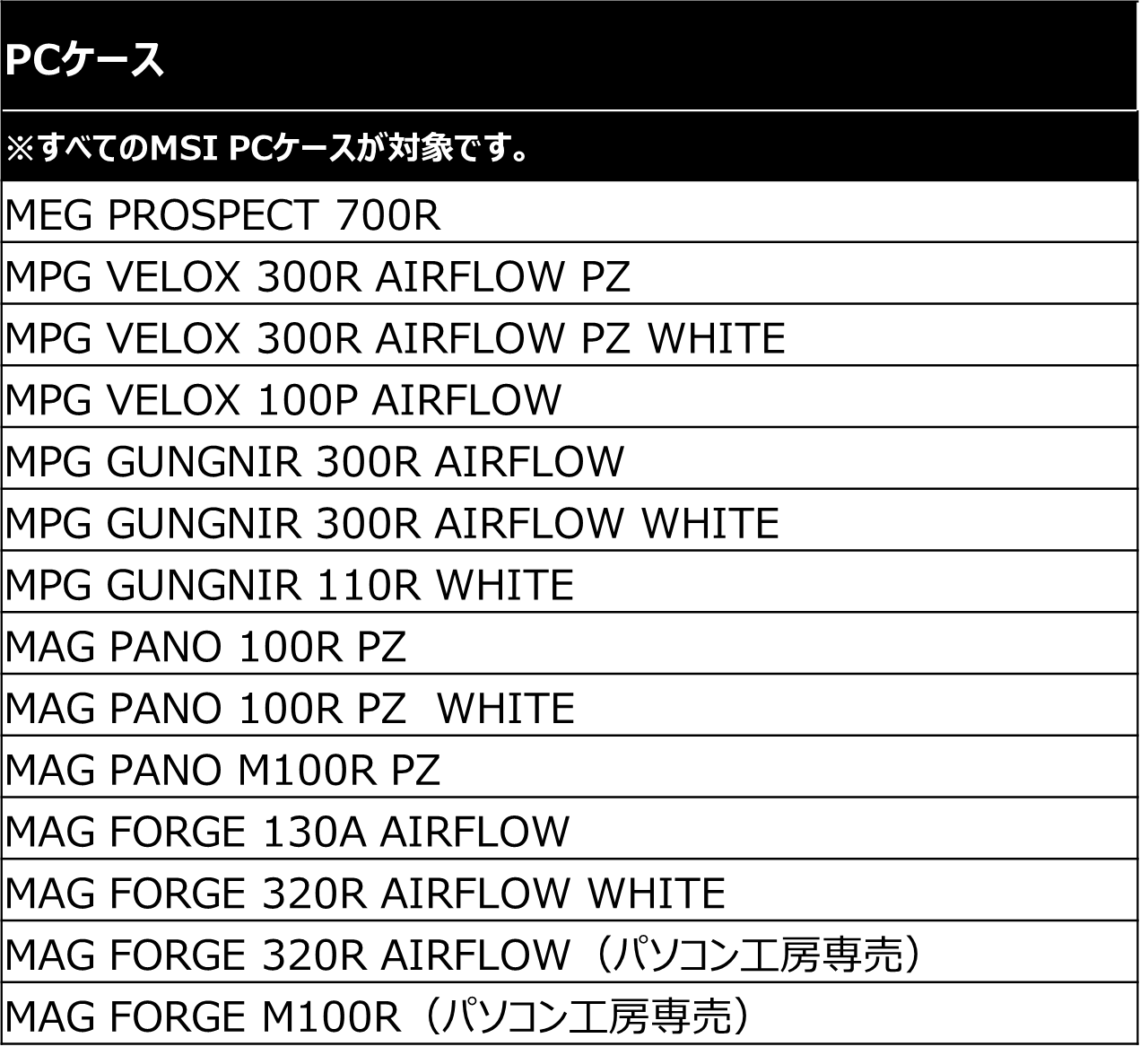 ※MSIのPCケース、水冷クーラー、電源はすべて本キャンペーンの対象です。上記に記載している製品は一部抜粋です。