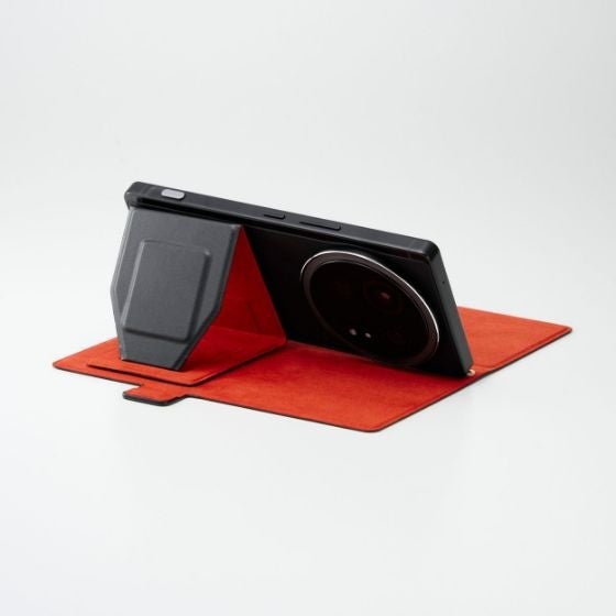 • 背面のフラップを折りたたむことで、スマホケースを装着したまま写真撮影が可能です。