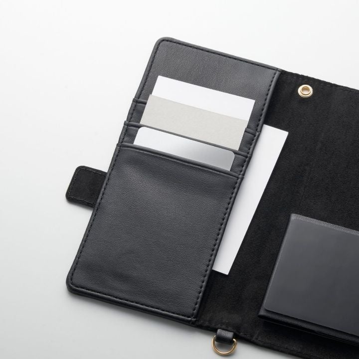 • フラップの内側に、メモやカードなどが収納できるポケットが付いています。カードを出し入れすることなく、そのままICカードを使用可能です。
