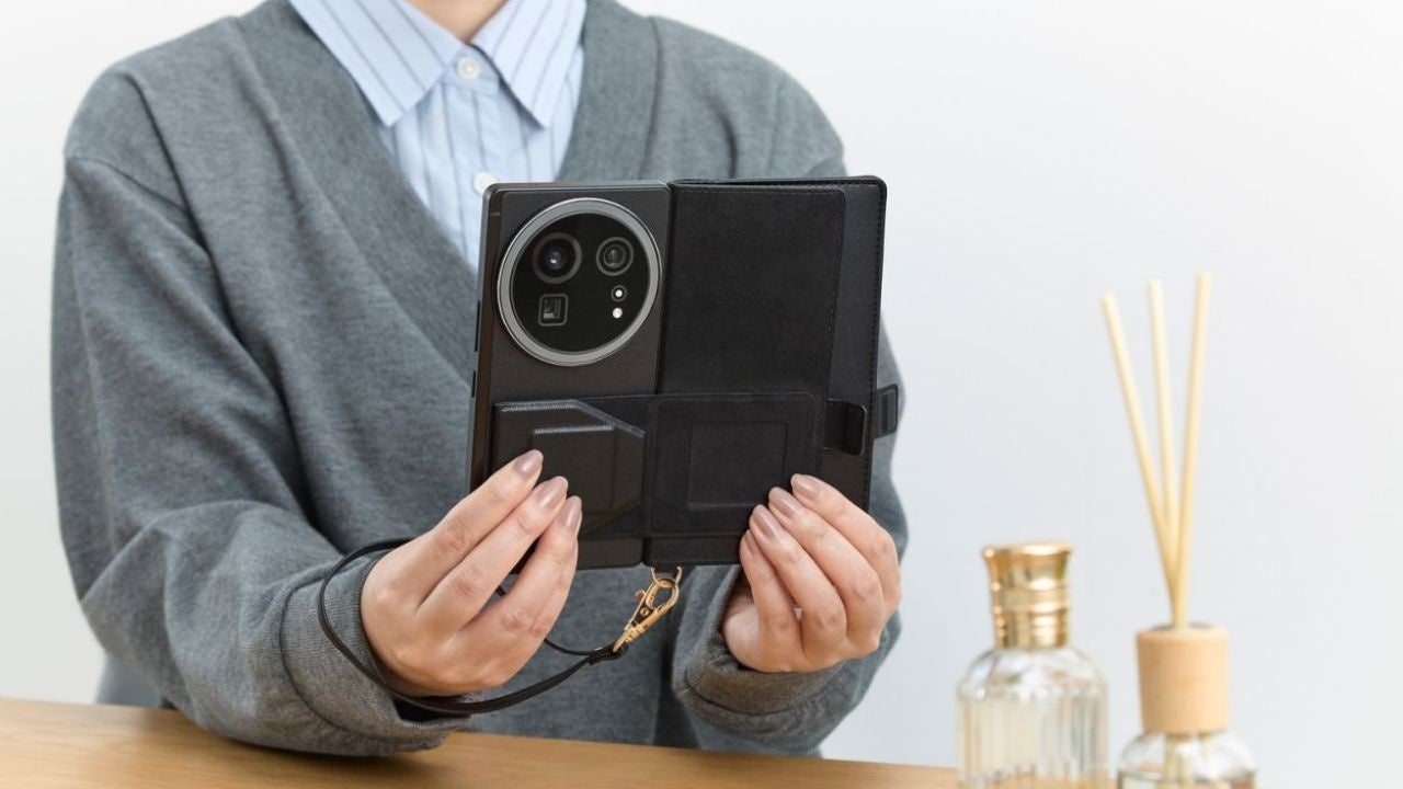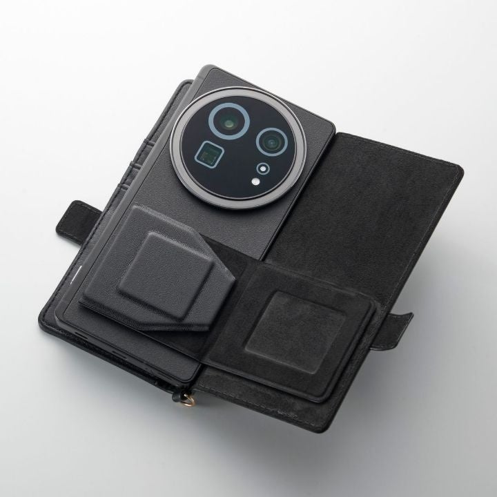 • 背面のフラップを折りたたむことで、スマホケースを装着したまま写真撮影が可能です。