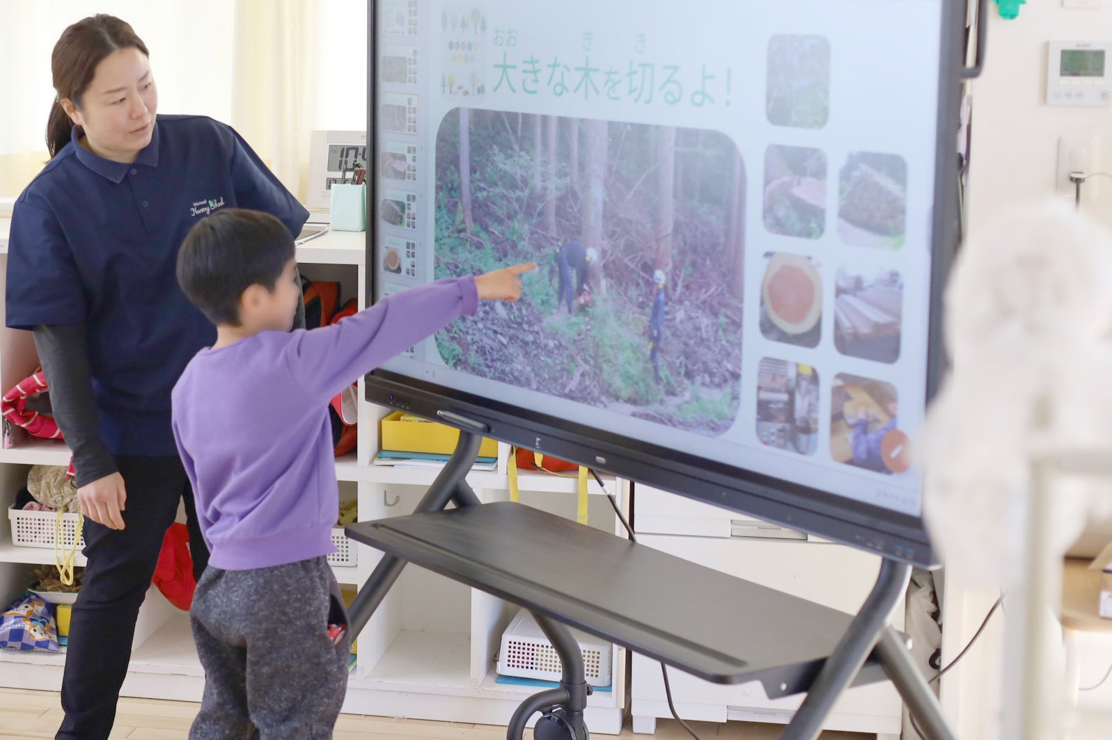 園児の好奇心を刺激し、新たな学びを生み出す。社会福祉法人興善会しらさぎ保育園に、電子黒板「ミライタッチ」を導入。