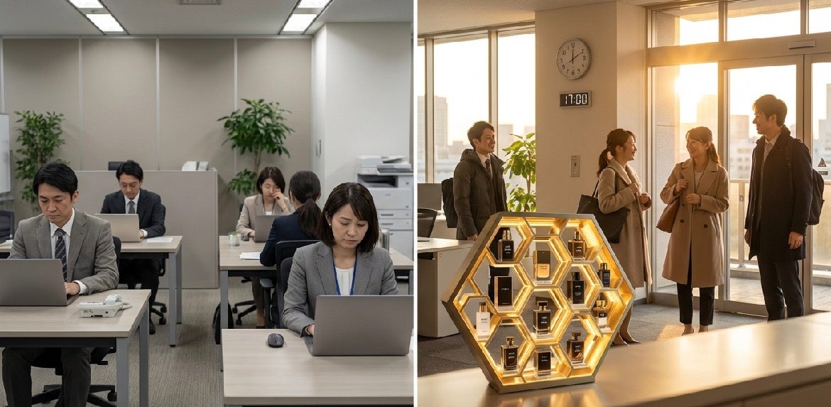 「今日はどの香りで帰ろう?」その小さな選択が、仕事モードからプライベートへの切り替えを自然に促し、従業員一人ひとりが自分らしさを取り戻すきっかけに。