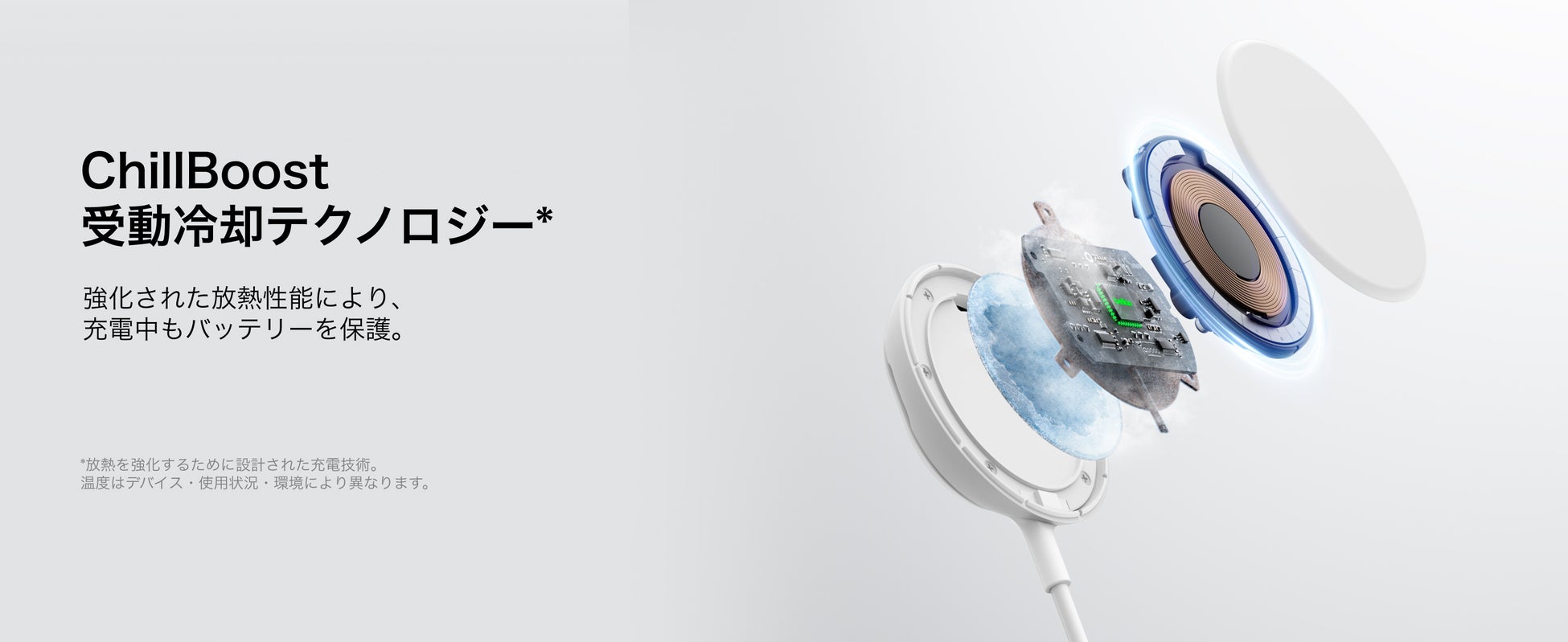 ChillBoost™ 受動冷却テクノロジー: 次世代の冷却技術を搭載。強化された放熱性能により、充電中の温度上昇を抑えてデバイスのバッテリー劣化を防ぎ、高出力を長時間維持します。