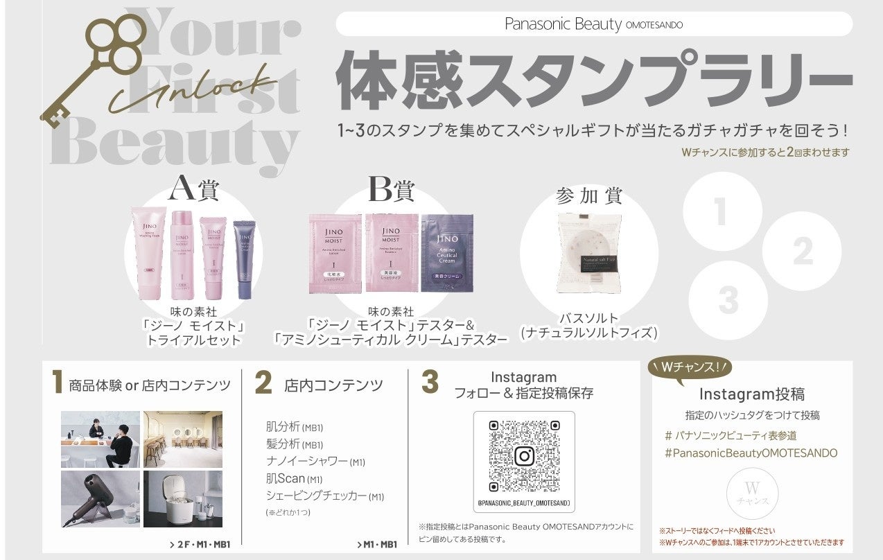 商品体験(最新美容家電やドライヤー等)or店内コンテンツを体験しスタンプを集めると、素敵な景品が当たるガチャガチャを回せます。